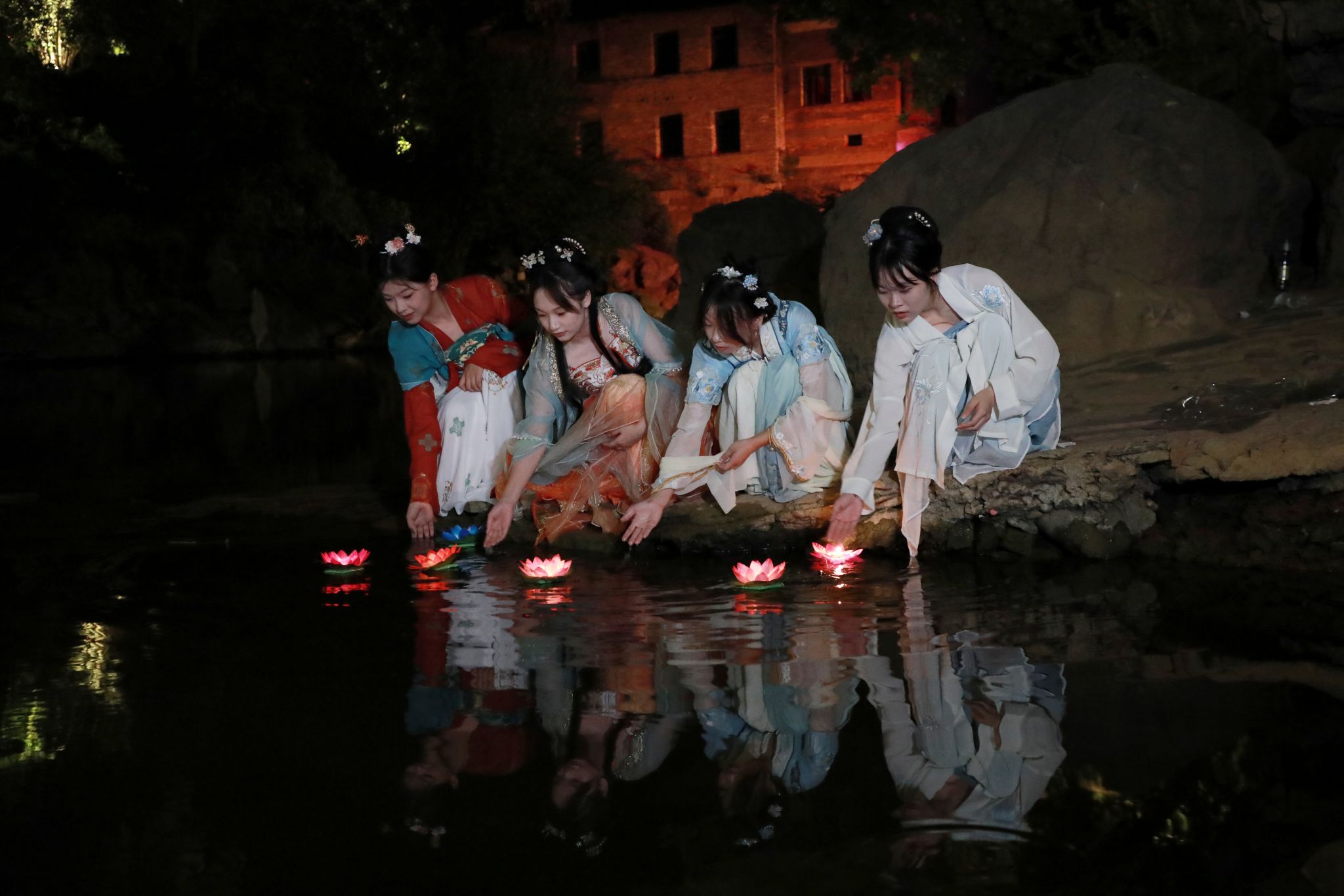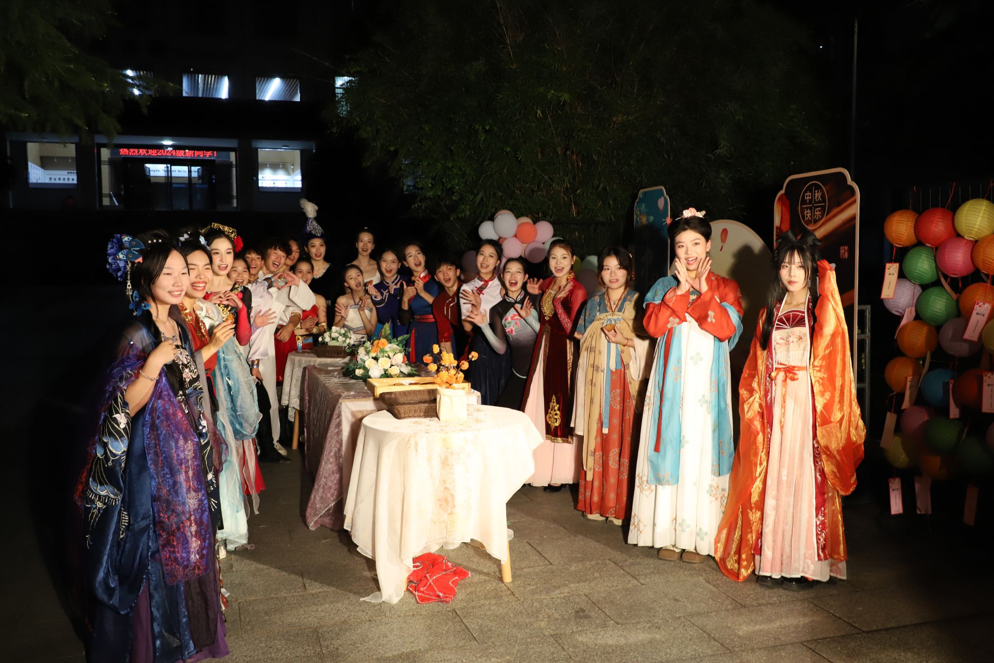 在浓浓月色之下,学校各族学生载歌载舞,欢度中秋,大家在体验中际遇古今、拾趣传统,插花、抚琴、品茗、吟诗……他们还来到愚溪河畔,放花灯祈福,通过流水千里寄相思。