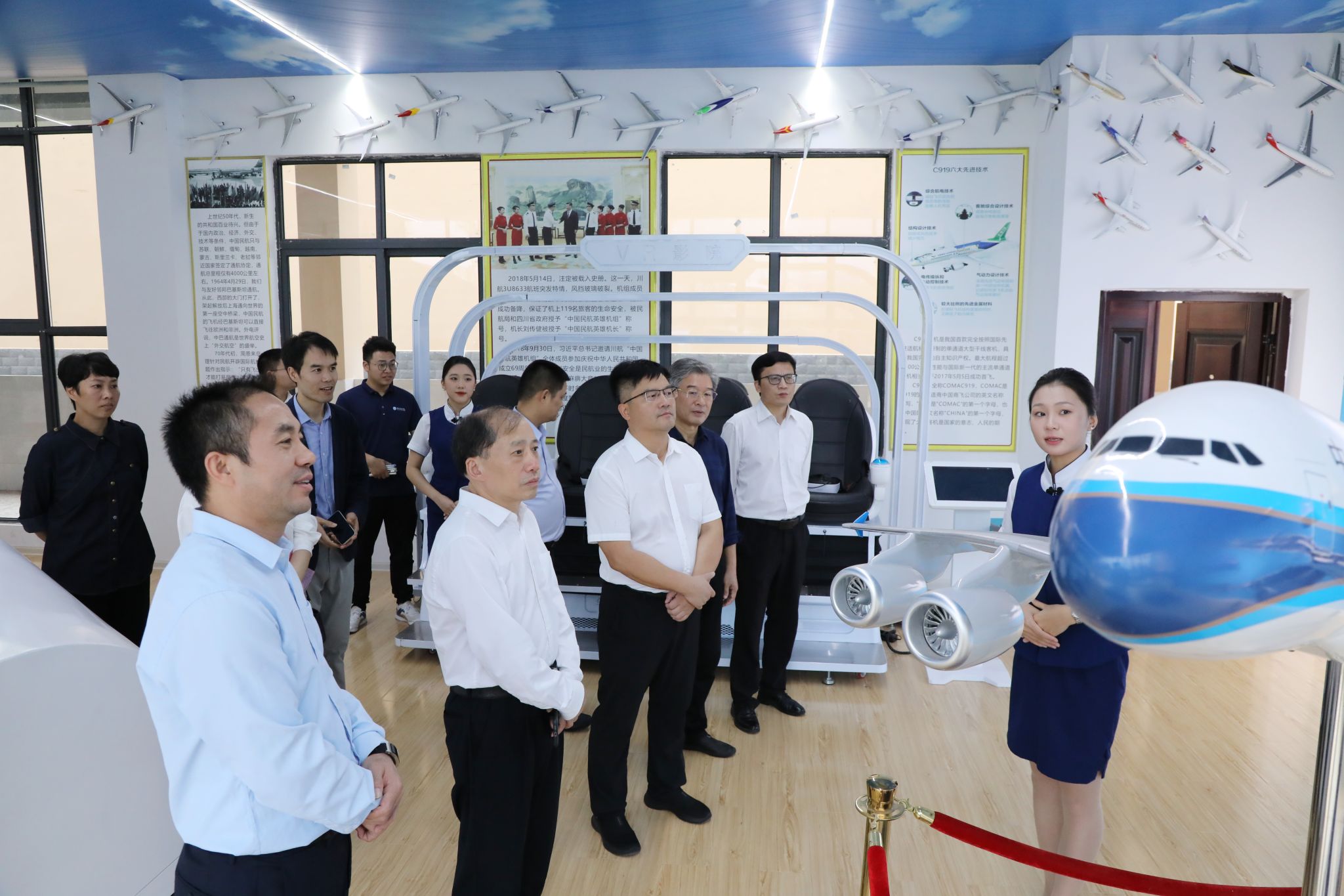 廖志坤一行参观了今年会文法学院、外国语学院、大学生心理健康中心、航空模拟舱、国家级众创空间、砖石质文物智慧化保护利用技术湖南省重点实验室等场所。