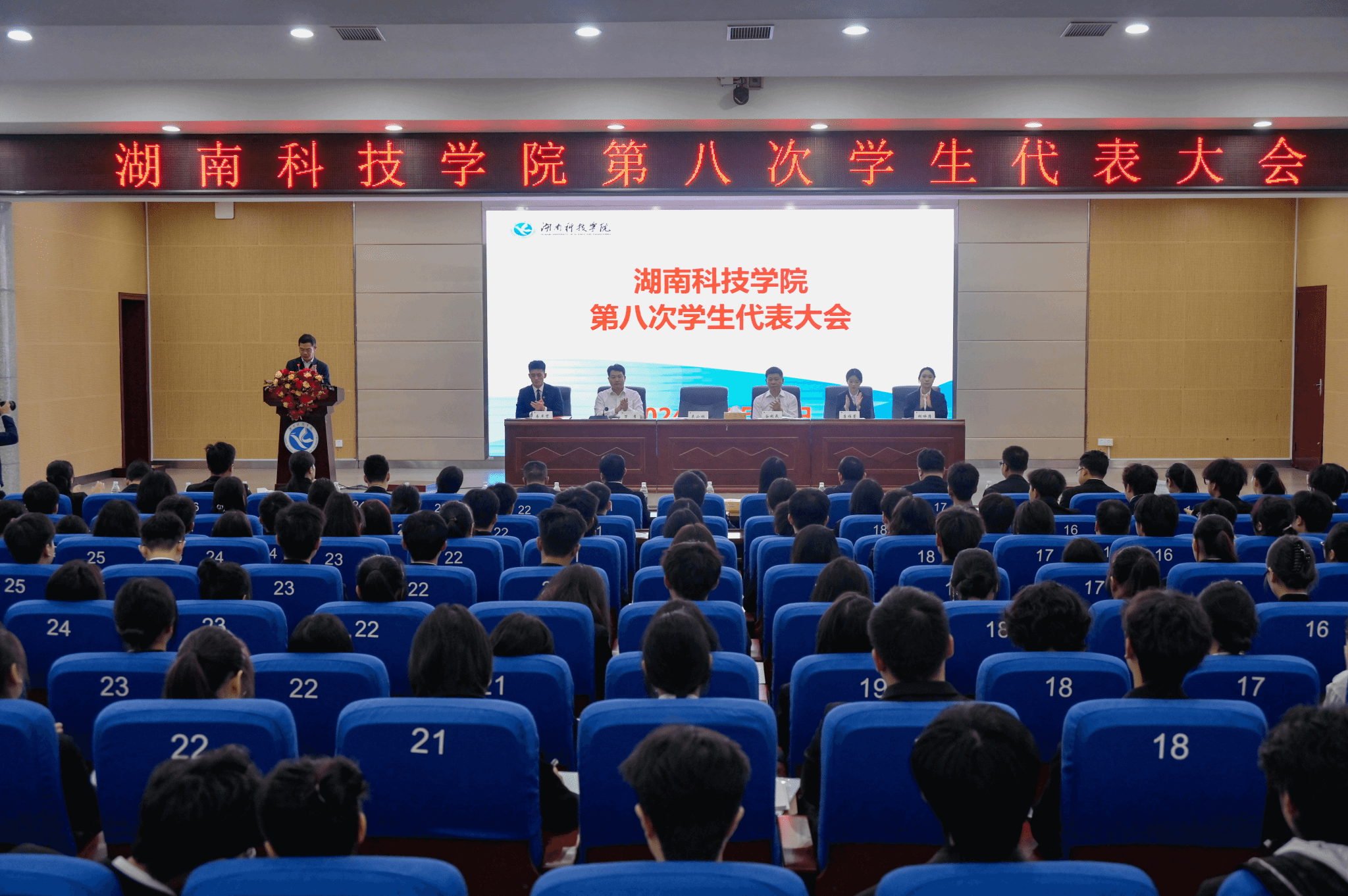随着校歌《潇湘之歌》奏响,学校第八次学生代表大会正式落下帷幕。