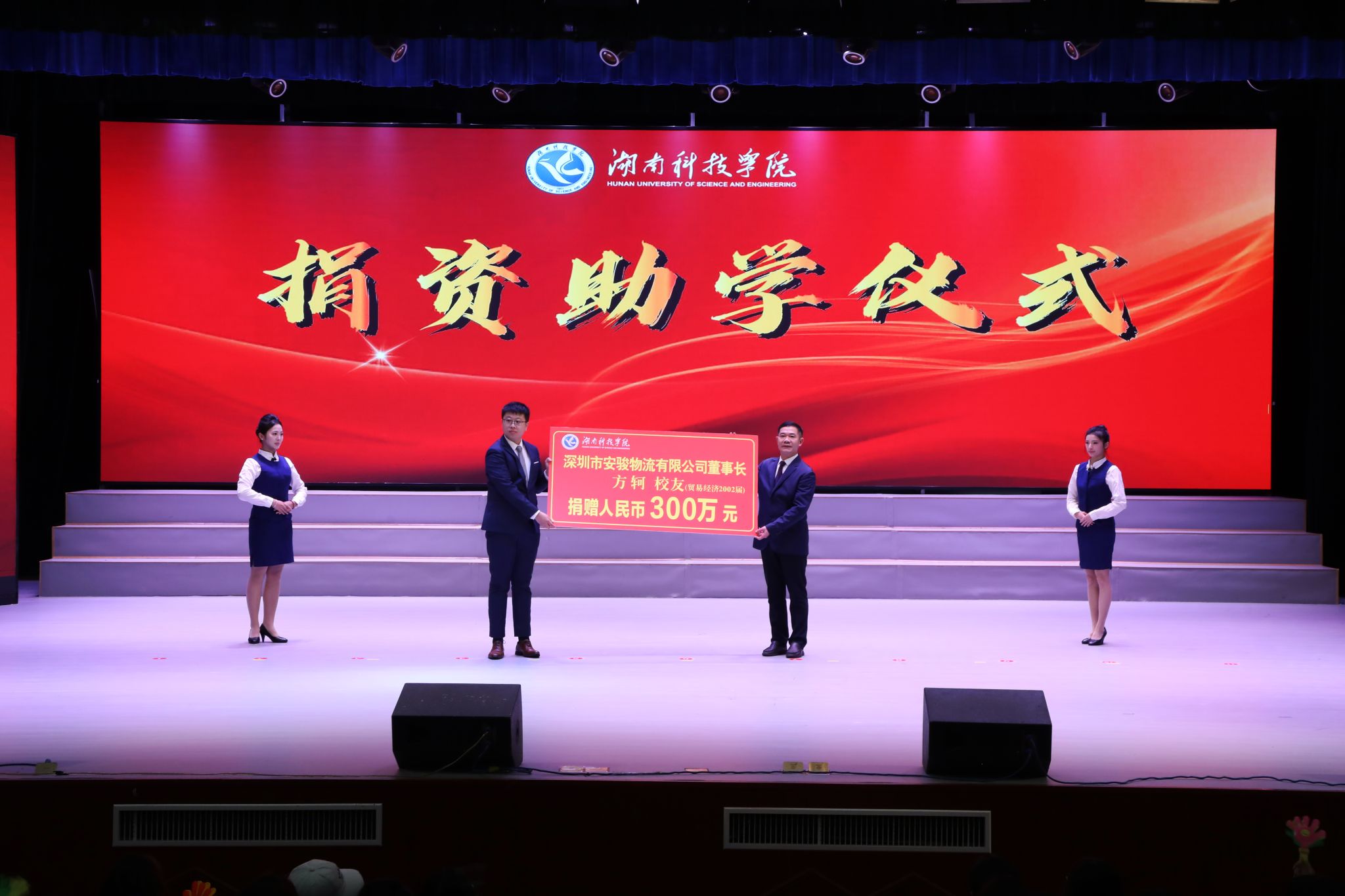 经济与管理学院2002届优秀校友、深圳市安骏物流有限公司董事长方轲捐赠300万元设立助学金,吴小林代表学校接受捐赠,远在巴西的方轲还通过视频表达了对母校的感恩之情,和助力母校教育事业发展的心愿。
