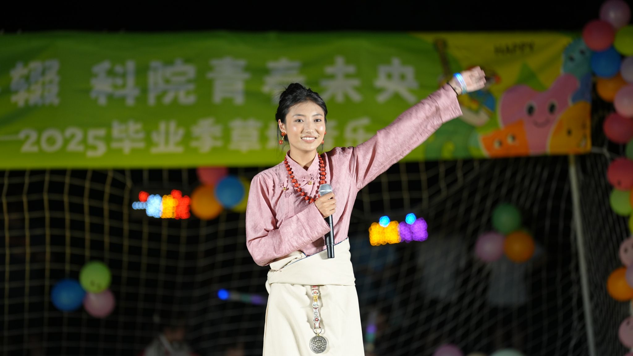 多巴胺街舞社以活力四射的开场舞点燃全场;rival乐队《我的大学生活》唱出了科院学子的幽默与思考,引发全场跟唱;一首《大山》余音百转,展现了科院学子的上进;舞狮表演更是点睛非遗魅力,体现了青年学子的创新精神,全体人员还共同唱响《鲜花》,熟悉的旋律在盛夏夜空中悠扬回荡,无数挥舞的荧光棒点亮黑夜,凝固成科院学子的共同记忆。