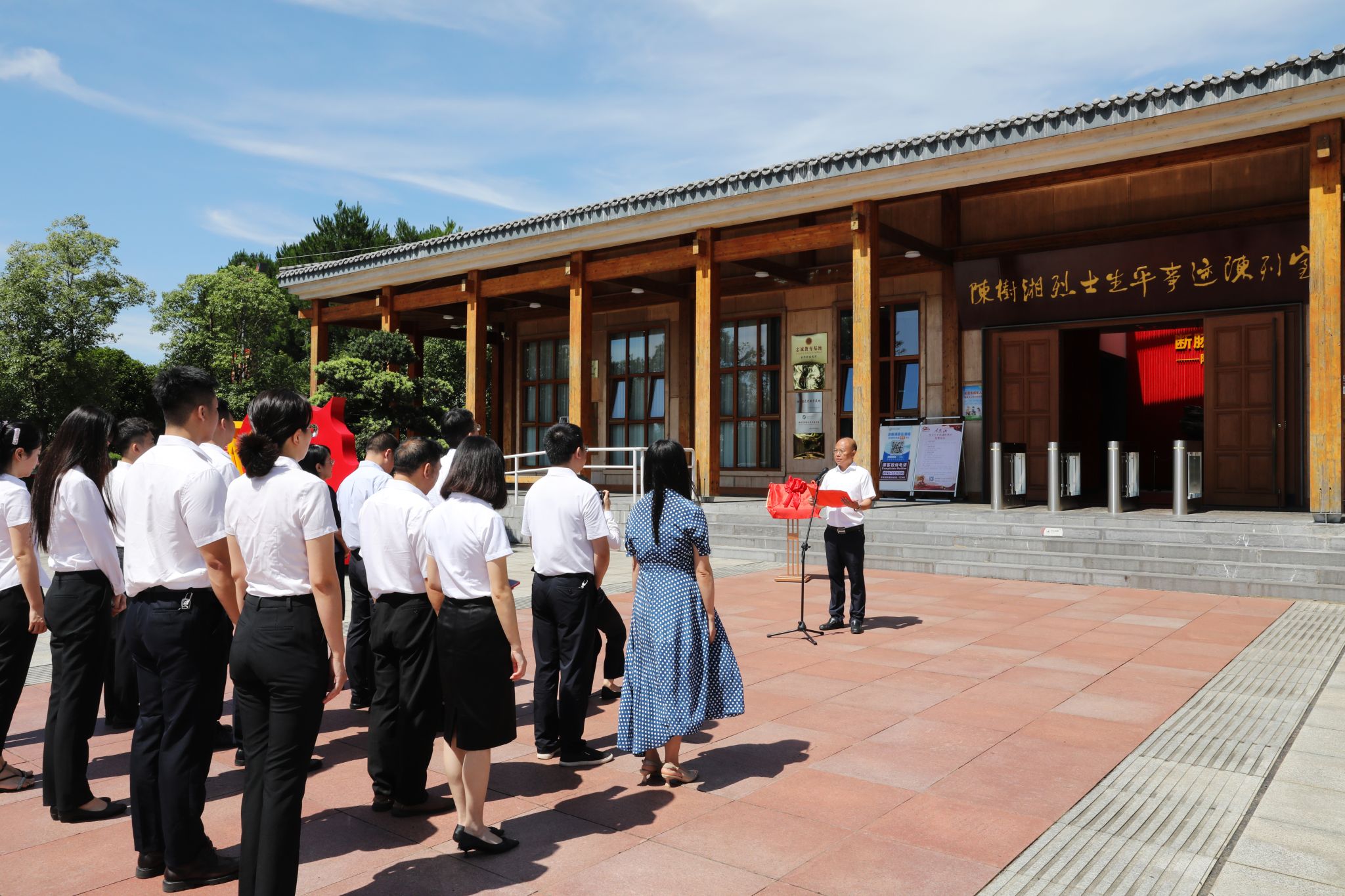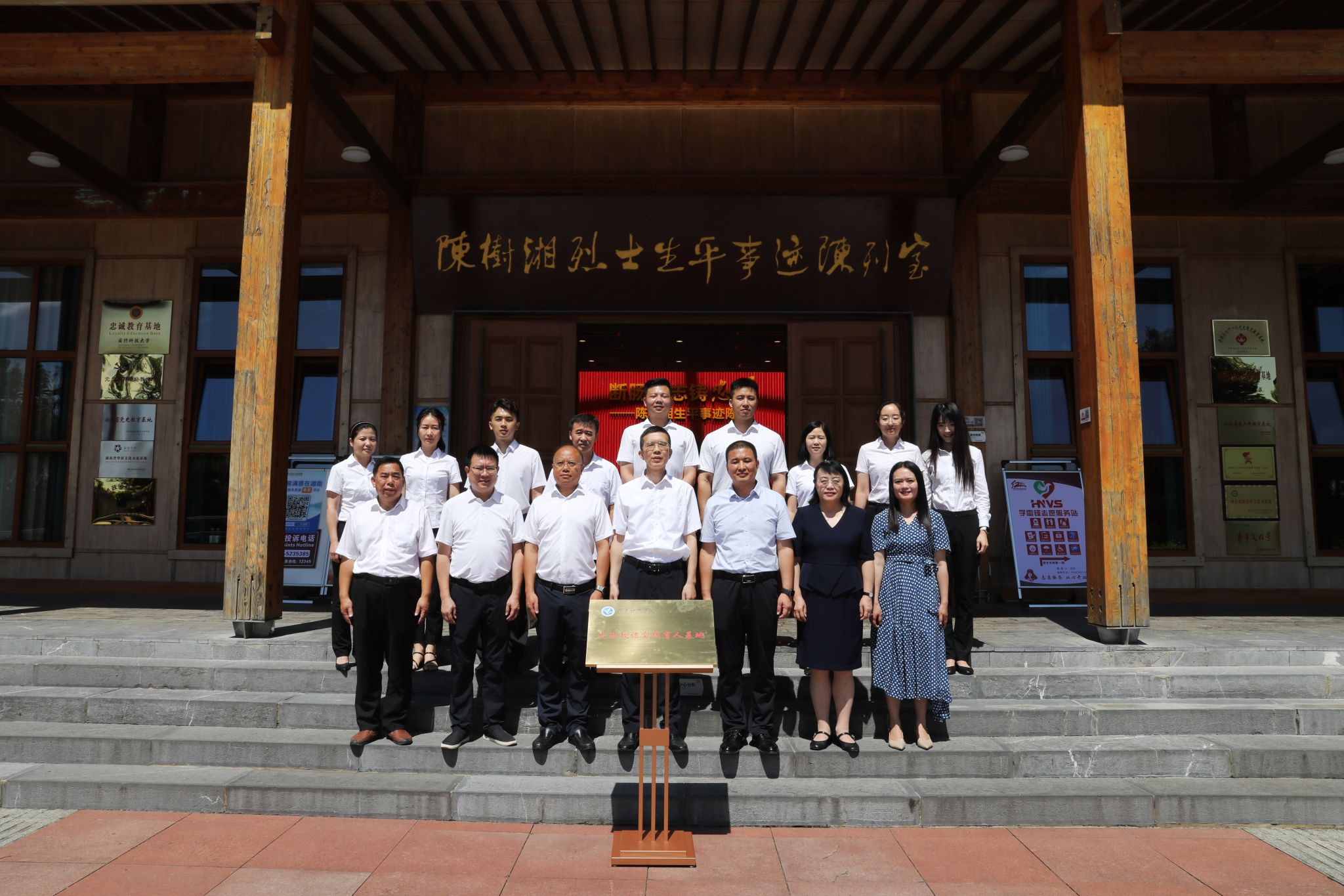 本网讯(通讯员 盘洪卓)7月3日,学校“大思政课实践育人基地”揭牌仪式在陈树湘红色文化园举行。校党委委员、纪委书记陈灿军,道县县委常委、宣传部部长唐华豪,陈树湘烈士纪念馆党组书记、馆长朱江民等领导出席仪式,仪式由朱江民主持。