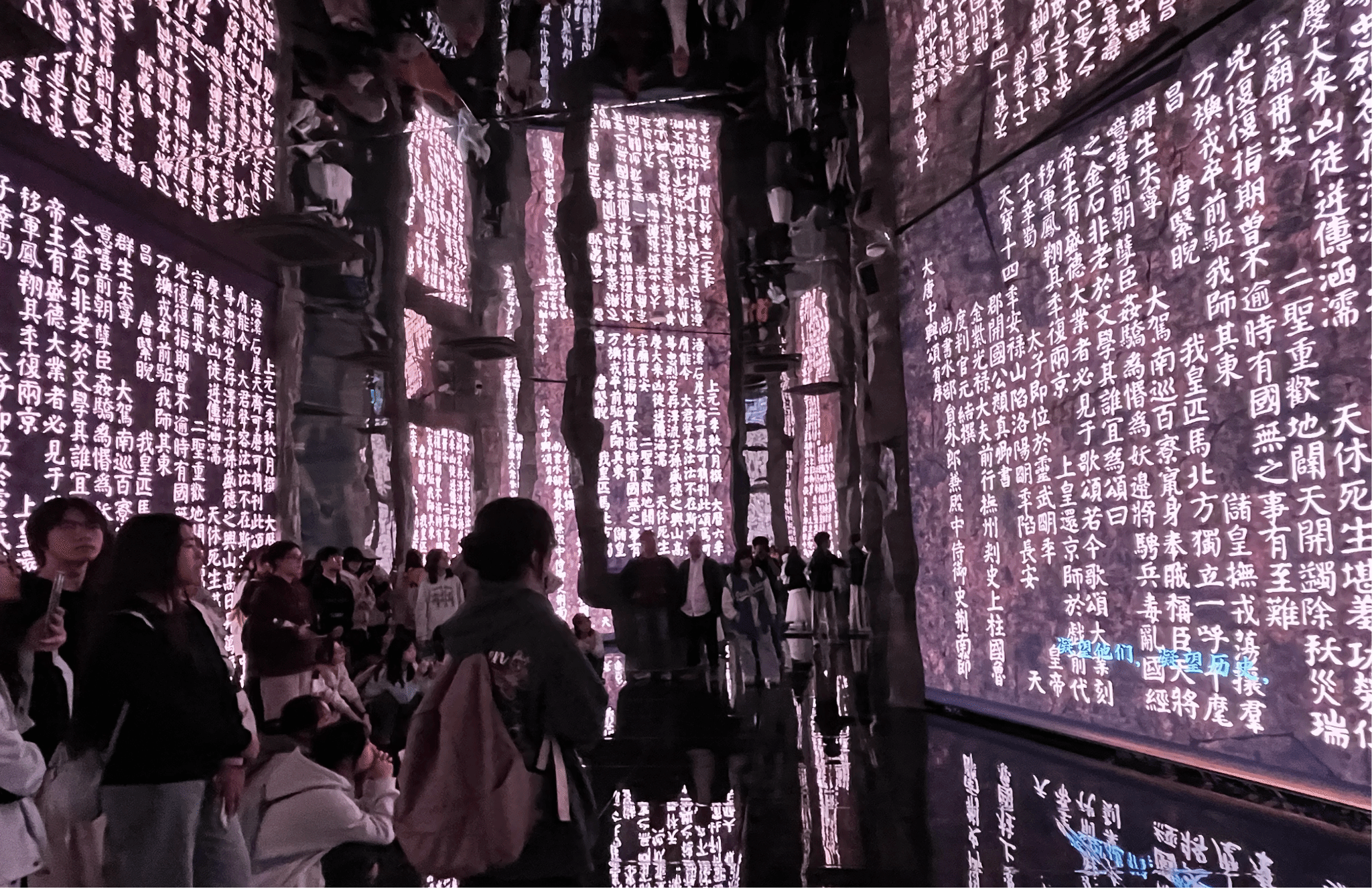 在全球首个专注于摩崖石刻的专题数字博物馆,师生通过书写、镌刻、锤拓等零距离感悟摩崖石刻的魅力,在AI大模型、全息投影、动作捕捉等技术支持下,同学们跨越时空与千年前的历史先贤元结对话;在中兴颂主题数字空间,“摩崖三绝”《大唐中兴颂》等珍贵石刻、唐宋明三代文化瑰宝,以动态化、交互式呈现在“石林”中。思政2301班田九余说到:“这个数字博物馆,不仅好看还好玩,这种沉浸交互式的体验,简直太震撼了!我从未如此生动地感受到中华优秀传统文化的美。”