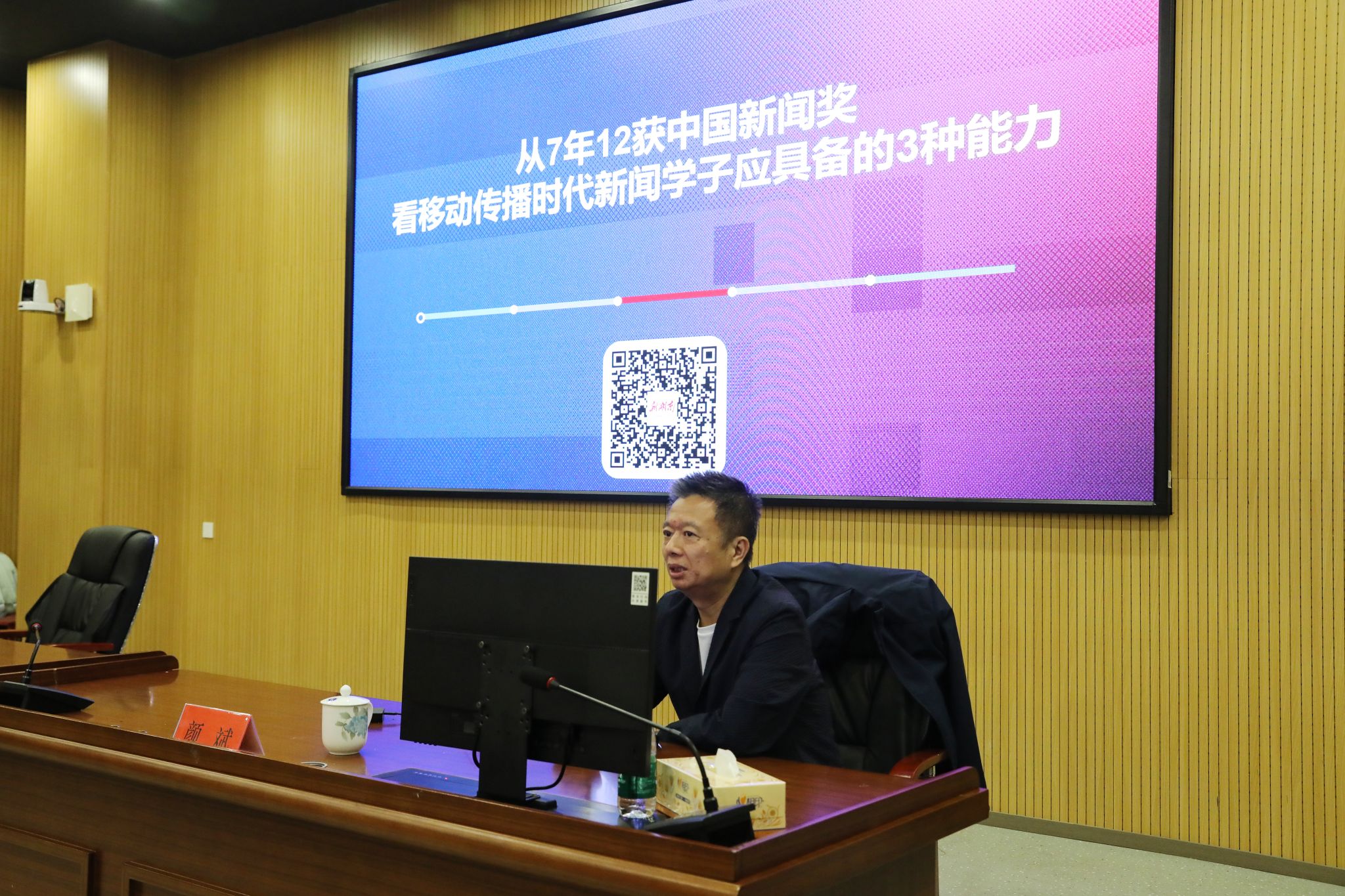 本网讯(通讯员 彭晥君 逄宇鸣)10月30日,湖南日报社党组成员、社务委员、副总编辑颜斌应邀来校作题为《从7年12获中国新闻奖看移动传播时代新闻学子应具备的3种能力》的学术讲座。