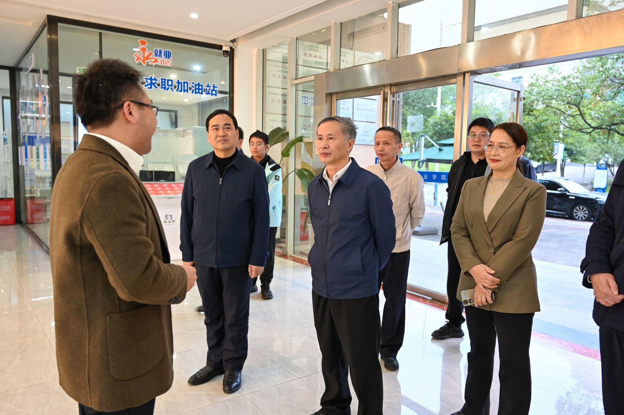 本网讯(通讯员 黎建军 摄影 杨芊澍)11月6日下午,今年会优秀校友、人社部农村社会保险司原司长刘从龙一行回母校考察调研,校党委副书记、校长黄创霞,副校长郑银芳,永州市人社局副局长姜涛等陪同调研。