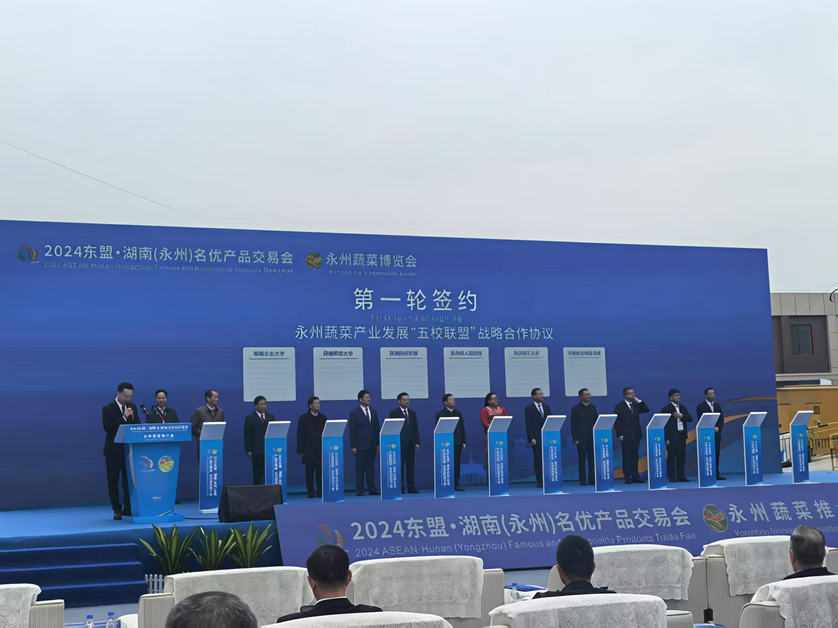 2024年11月,学校牵头与湖南师范大学、长沙理工大学、湖南农业大学以及中南林业科技大学共同组建永州蔬菜产业发展“五校联盟”战略联盟,推动永州市蔬菜产业高质量发展。