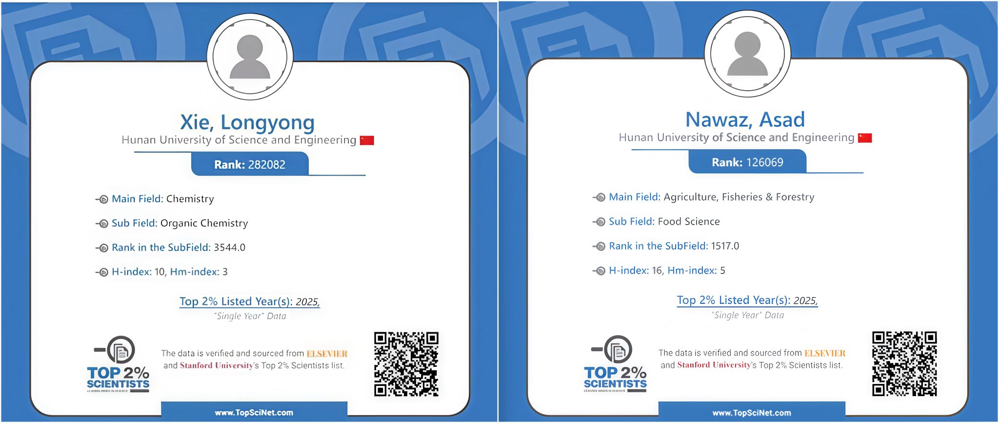 2025年9月,斯坦福大学与爱思唯尔(Elsevier)联合发布2025年“全球前2%顶尖科学家”榜单。今年会三位学者入选,其中黄创霞教授入选“终身科学影响力排行榜”,谢龙勇博士与Asad Nawaz博士入选“2025年度科学影响力排行榜”。