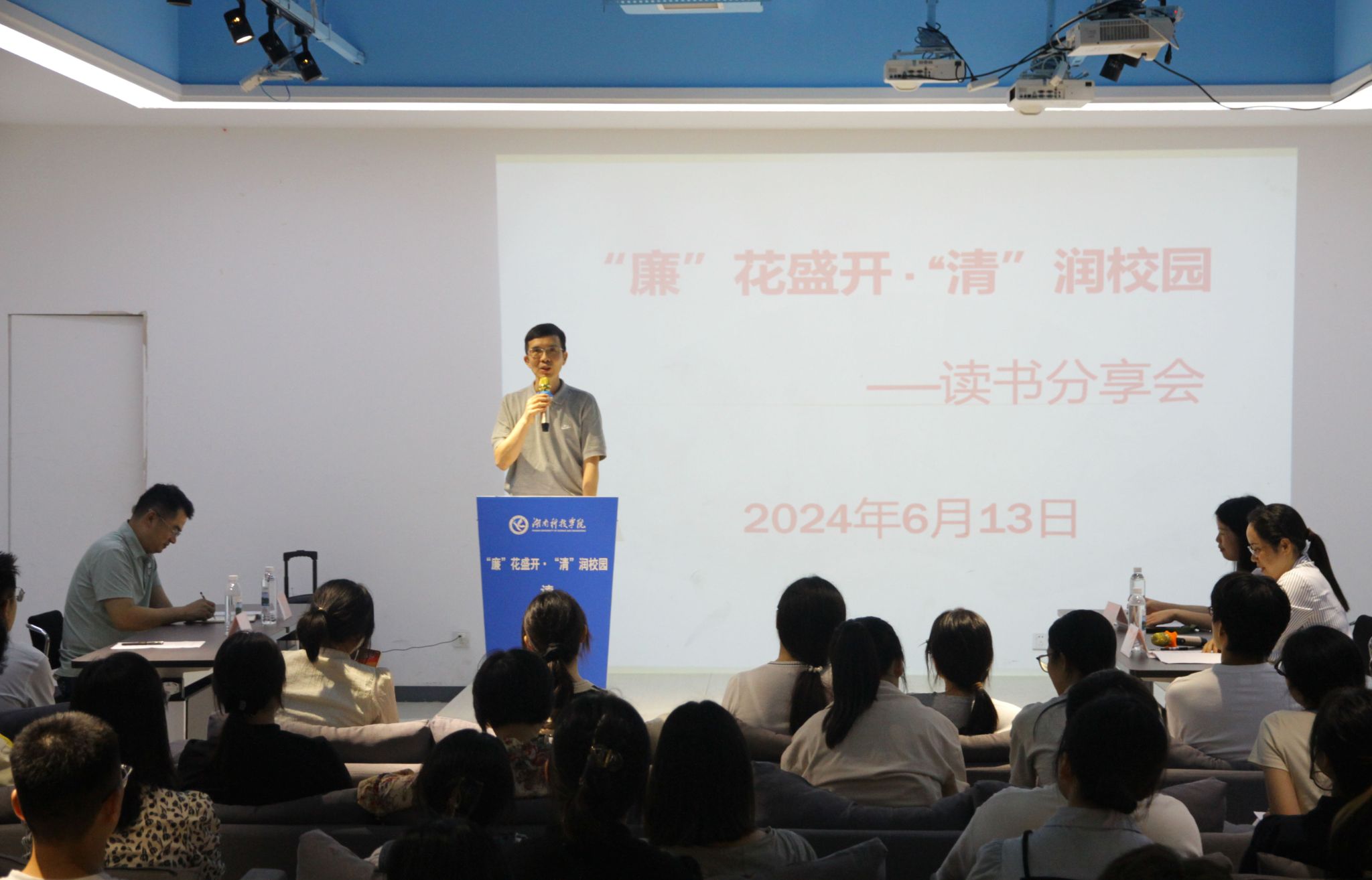 本网讯(通讯员 李小红)“粉身碎骨浑不怕,要留清白在人间。”6月13日,学校图书馆(档案馆)与纪检监察处联合举办了“廉”花盛开·“清”润校园读书分享会,现场师生们齐声共吟《石灰吟》,拉开活动的序幕。校纪委书记陈灿军,纪委副书记、纪检监察处处长郑向晖与60余名师生党员代表一同参加活动。