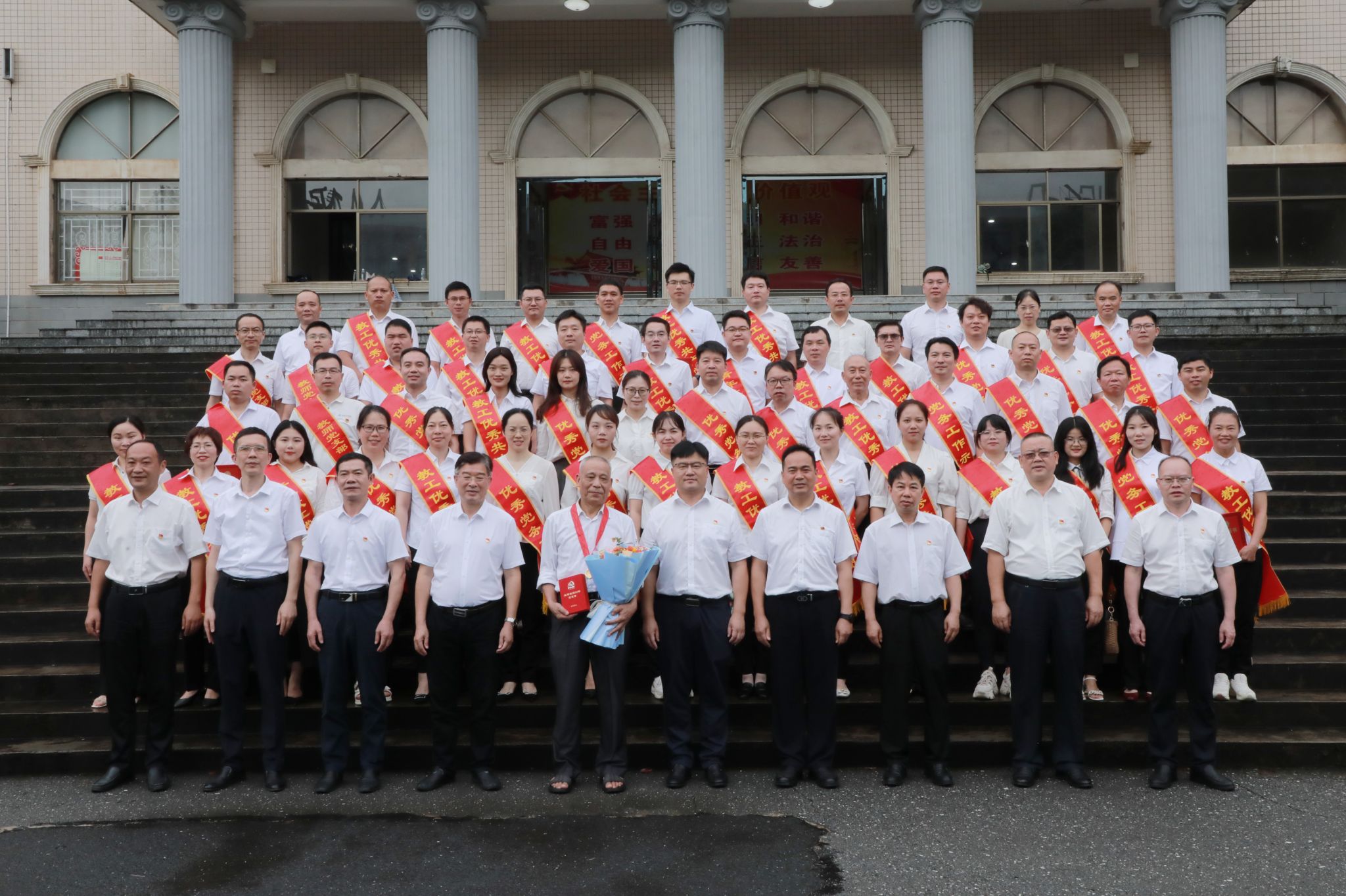 校党委副书记宋宏福宣读“七一”表彰决定,对“光荣在党50年”纪念章获得者、先进直属党组织、教师党支部书记“双带头人”标兵、党务工作示范岗、青年教工党员示范岗、优秀党务工作者和优秀共产党员提出表彰。