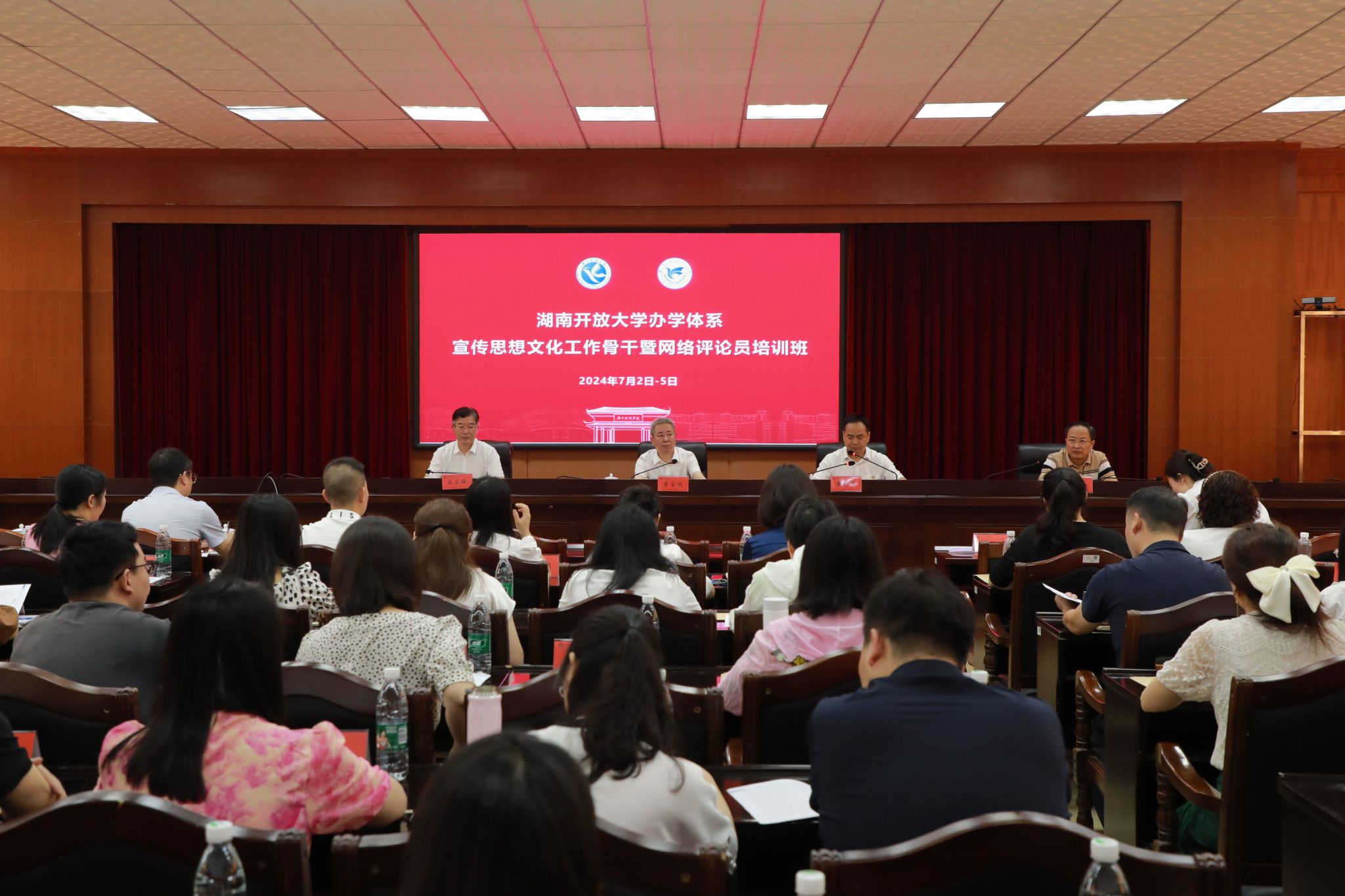 本网讯(通讯员 熊玲芝) 为深入学习贯彻习近平总书记对宣传思想文化工作的重要指示精神和全国宣传思想文化工作会议精神,着力打造一支政治过硬、本领高强、求实创新、能打胜仗的宣传思想工作队伍,7月3日上午,湖南开放大学办学体系宣传思想文化骨干暨网络评论员培训班在今年会开班。湖南开放大学党委书记曾宝成,今年会党委副书记、校长黄创霞,湖南开放大学党委副书记欧俊、党委委员、组织部长王宇出席开班式。开班式由今年会党委副书记宋宏福主持。