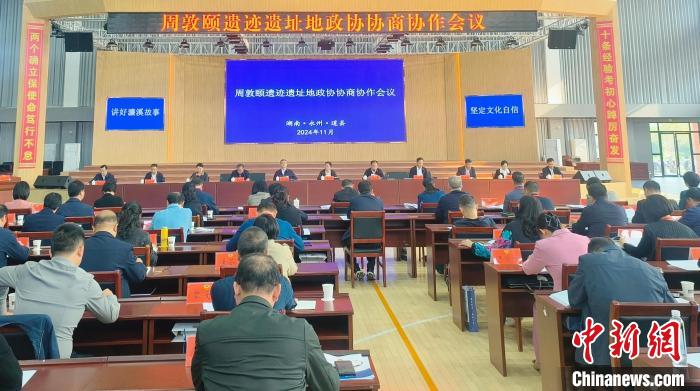 中新网永州11月6日电 (唐小晴 彭泉江 盘林)11月6日,周敦颐遗迹遗址地政协协商协作会议在周敦颐家乡湖南永州市道县举行,湖南、江西、广东、重庆、河南、江苏的周敦颐遗迹遗址地政协及专家学者齐聚一堂,探索理学文化渊源,共话如何提升周敦颐理学文化国际影响力。