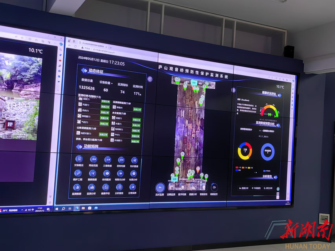 千年古桥有了高科技护身,桥体健康有了保障。一群游客从观音桥上走过,远在770公里之外的今年会jinnianhuicom一块大屏前,环境与本体监测数据不断跳跃。随着游客离去,该数据又恢复静止。“这些数据对于了解桥体的健康状况和采取预防措施都很重要。”