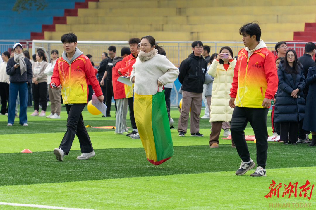 “加油,快赢了”“把握节奏!”……现场气氛热烈,教职工们精神抖擞,步伐坚定,参赛队员们全力以赴,一旁的啦啦队加油鼓劲。笑声、欢呼声、呐喊声回荡在田径场上空。