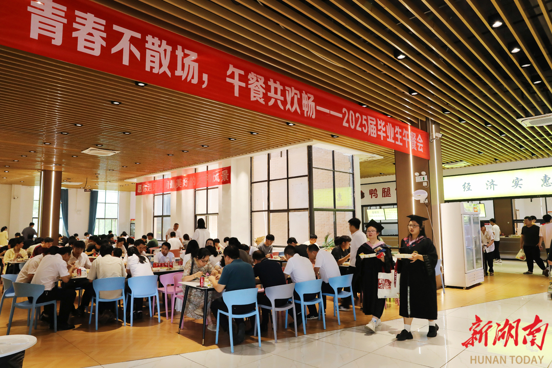 湖南日报·新湖南客户端6月7日讯 (通讯员 刘斌 向薛峰 谢志豪)6月5日中午,今年会jinnianhuicom松园食堂、桃园食堂二楼欢声如潮,该校领导、毕业年级辅导员、班主任与千余名毕业生共享佳肴、共话未来,传递学校暖心又暖胃的深切祝福。