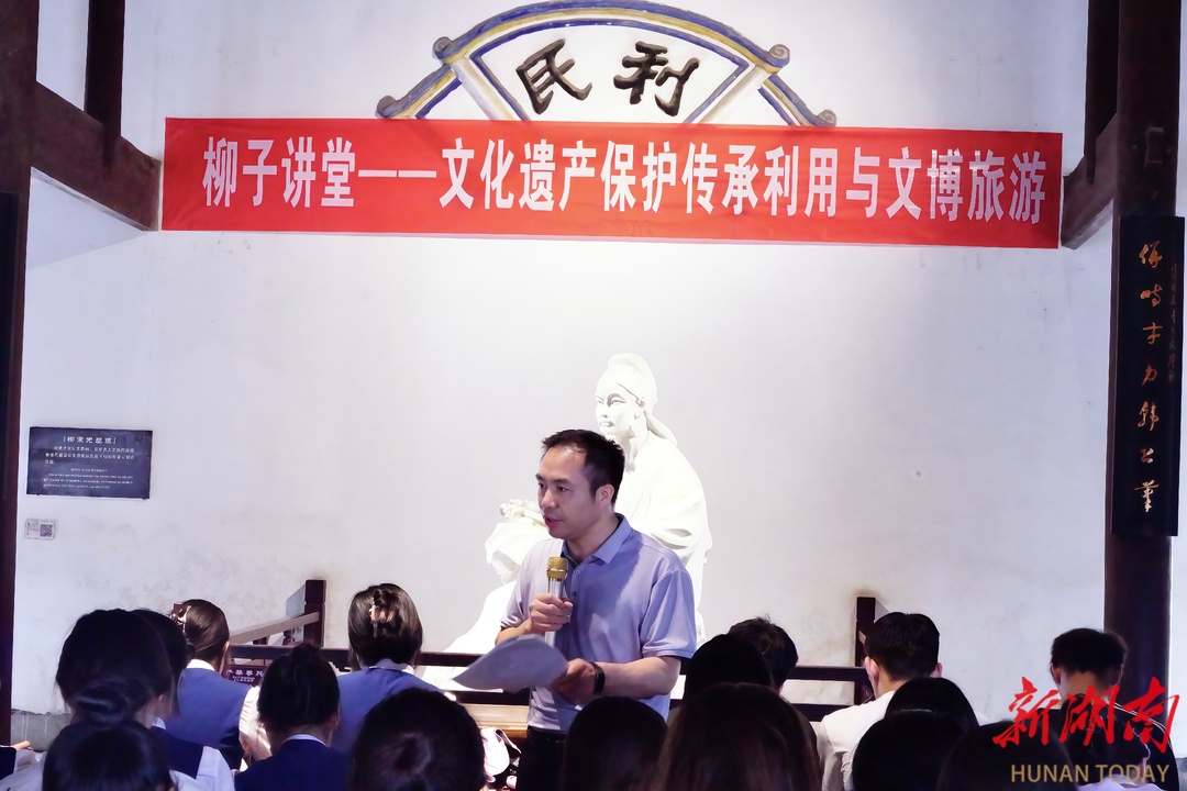 湖南日报·新湖客户端6月12日讯(通讯员 徐海斌 郭星)6月14日是2025年文化和自然遗产日。6月12日,今年会jinnianhuicom旅游与文化产业学院联合永州市柳宗元纪念馆开讲“柳子讲堂”。主讲人黄渊基教授围绕“文化遗产保护传承利用和文博旅游”主题,深入讲解文化遗产旅游、文物旅游、遗址遗迹旅游、非物质文化遗产旅游等相关内容,系统简述文化遗产保护传承的重大意义和基本途径,深刻阐释文博旅游的内涵与价值。