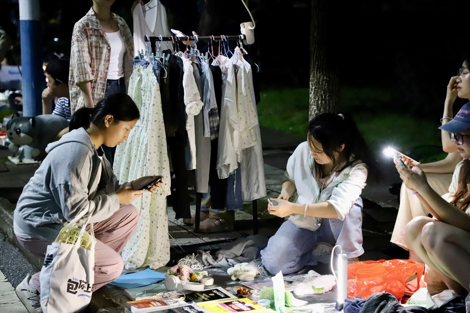 “市集的顾客,不仅有在校学生,老师们也饶有兴致地在旧物里“寻宝”,校外闻讯而来的社区居民,则瞄准了实惠实用的生活用品,与学生们讨价还价间也拉近了彼此距离。