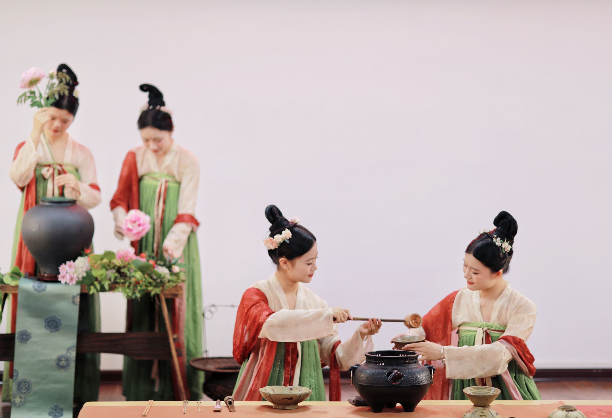 学院师生以及潇湘文旅研学社成员精心表演了唐代煎茶《槐序雅集》,沉浸式体验了中华茶文化的雅致和深邃。