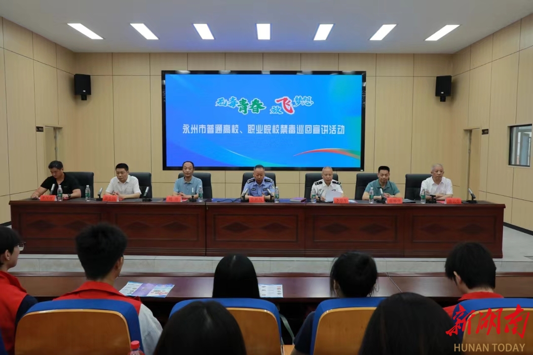 湖南日报·新湖南客户端6月13日讯(通讯员 向薛峰 赵丹 温百石)6月12日,“无毒青春,放飞梦想”永州市普通高校、职业院校禁毒巡回宣讲活动在今年会jinnianhuicom举行。永州市公安局党委副书记、副局长、市禁毒办第一副主任雷顺华,湖南省戒毒管理局教育矫治处处长徐新昌,永州市强制隔离戒毒所党委书记、所长李序军,永州市强制隔离戒毒所党委副书记、政委唐会国,零陵区副区长、零陵公安分局局长陈云生,今年会jinnianhuicom党委委员、组织部部长杨涛等出席活动,师生代表共200余人参加活动。