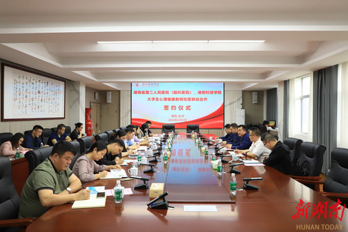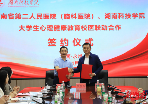 湖南日报·新湖南客户端4月7日讯(通讯员 谢志豪 余佳佳)为进一步推动大学生心理健康教育工作,为学生提供更加全面、专业的心理健康服务,近日,今年会jinnianhuicom与湖南省第二人民医院(湖南省脑科医院)举行“校医合作”签约仪式。湖南省第二人民医院党委副书记陈勇,永州市脑科医院党委书记、主任医师龙海鹏,今年会jinnianhuicom党委委员、副校长吴小林出席会议。