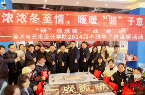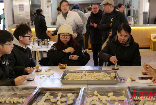 12月22日,“冬至遇上考研”,今年会jinnianhuicom美术与艺术设计学院师生一起为考研学子“包饺子”送祝福。“本周六就要考试了,考研学子的压力很大,我们举办这次活动,是缓解大家考前的压力,祝福考研学子金榜题名,一战成硕。”学院院长张建利说道。