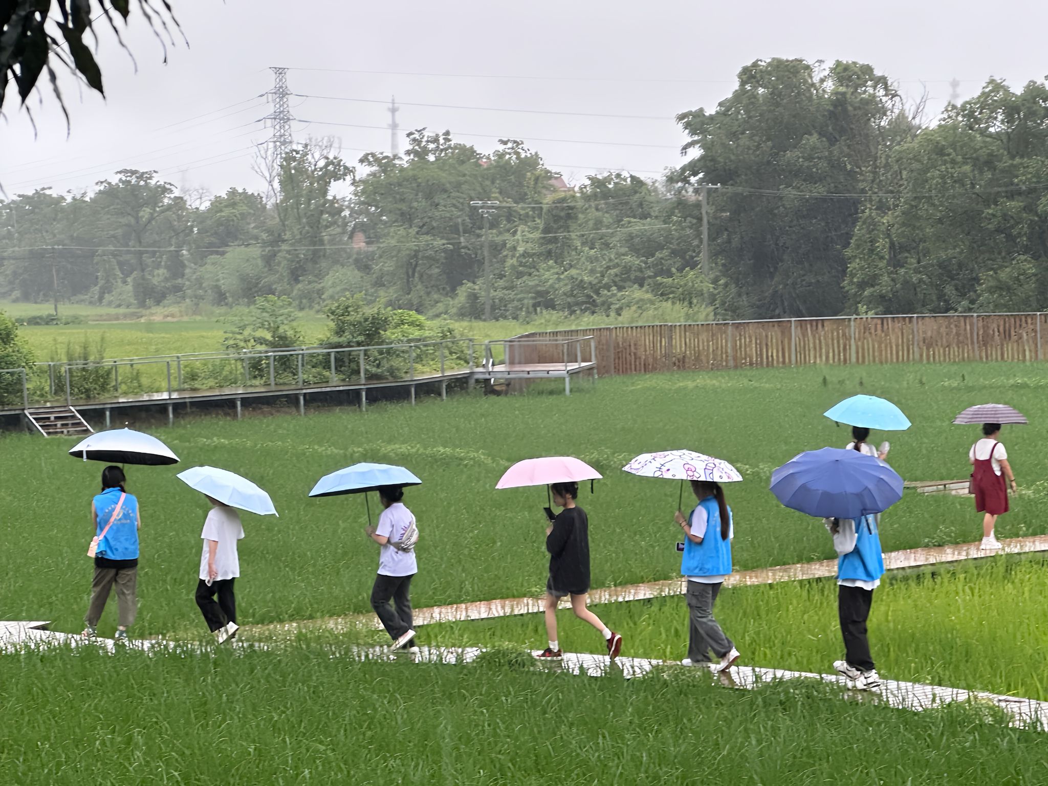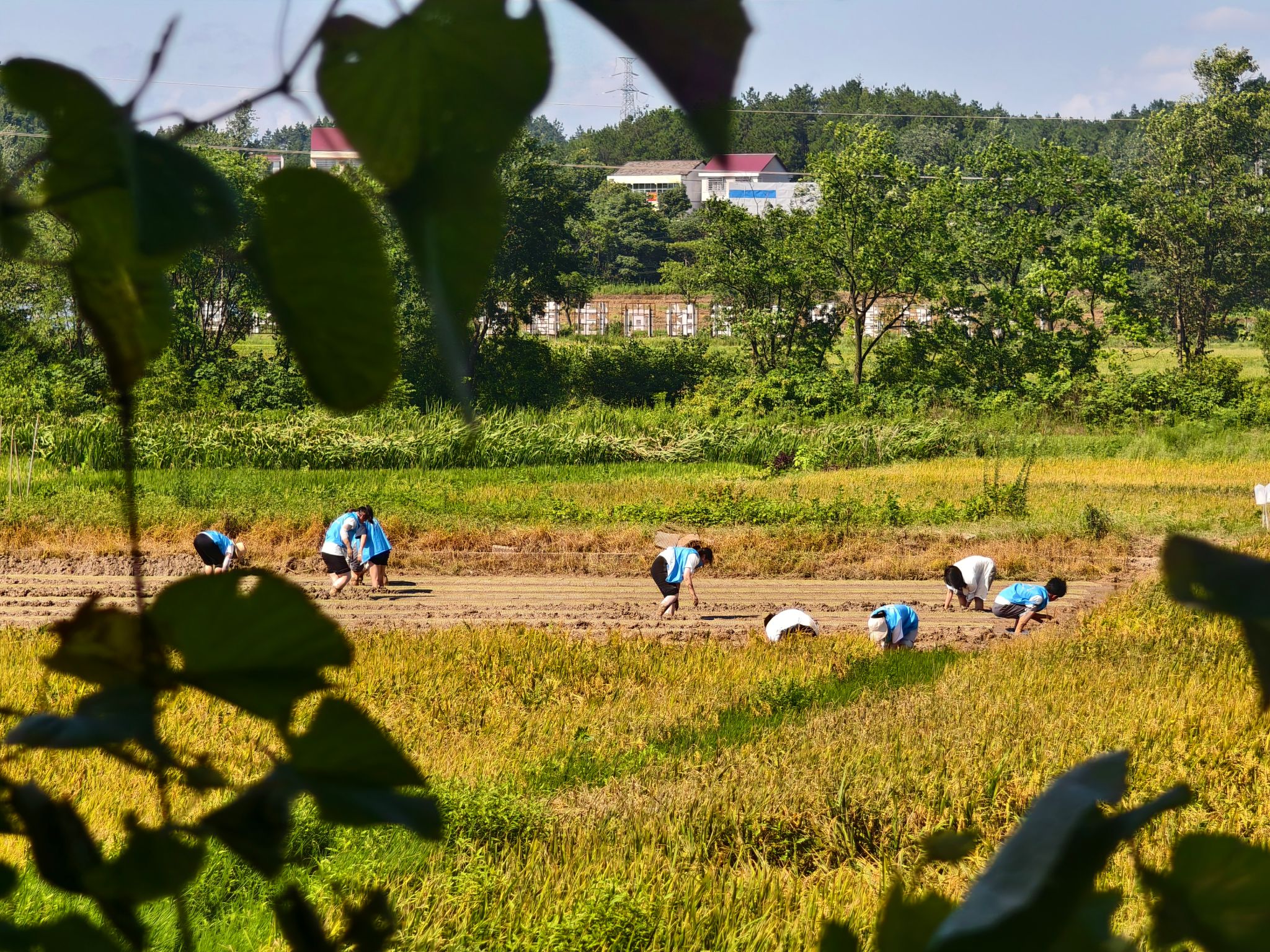 烈日炎炎下,大学生服务团成员们身着统一的志愿