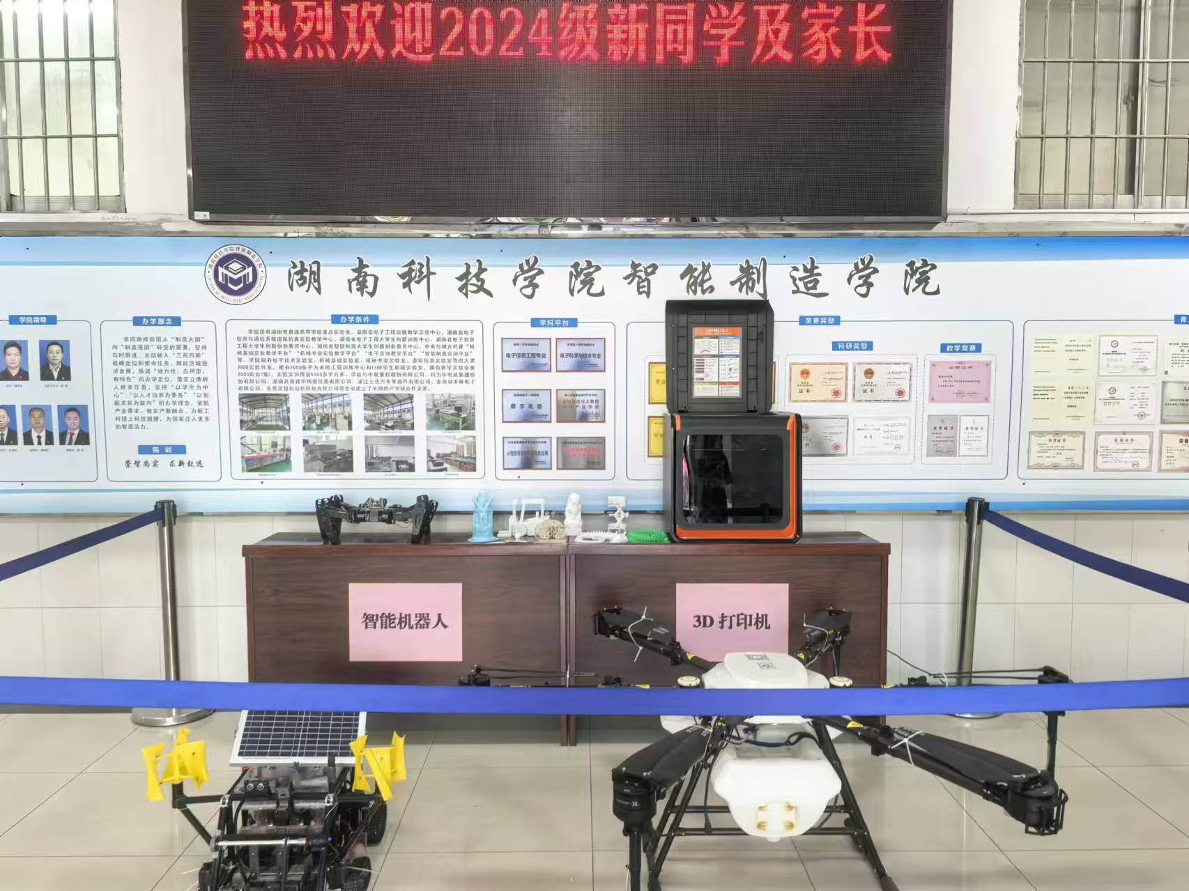 步入致远楼,映入眼帘的是智能机器人和3D打印机等,展示着智能制造学院在专业方面的建树,展览的物品吸引着众多新生参观。