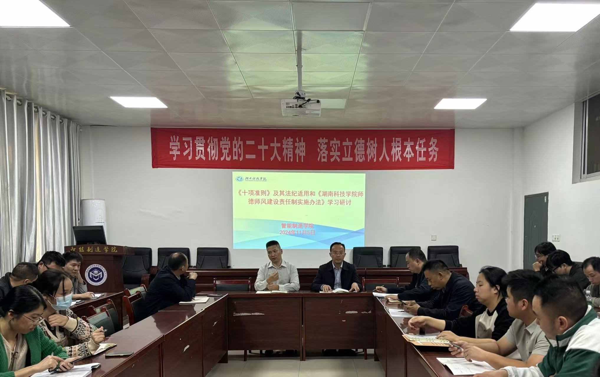 本网讯(通讯员 曾妙春)为进一步增强教师的责任感、使命感、荣誉感,规范职业行为,明确师德底线,引导广大教师努力成为有理想信念、有道德情操、有扎实学识、有仁爱之心的好老师。11月5日下午,智能制造学院组织全体教职工重温《新时代高校教师职业行为十项准则》(以下简称《十项准则》),开展研讨交流。