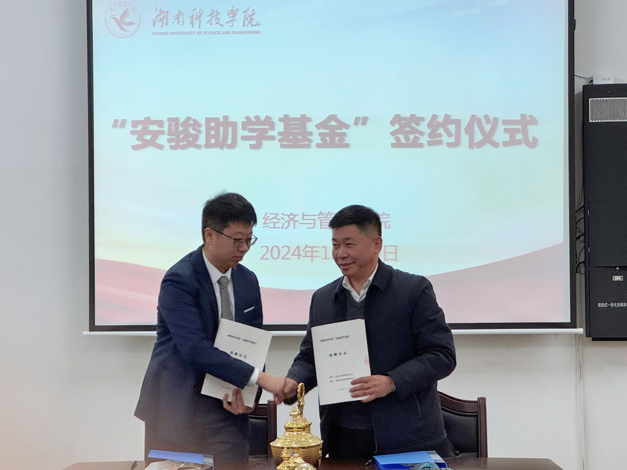 本网讯(通讯员 李晓)12月10日,经济与管理学院同深圳市安骏物流有限公司于立信楼213举行“安骏助学基金”签约仪式。校友企业代表、安骏物流公益基金会管理部经理陈泽,校党委委员、副校长吴小林出席仪式,学生工作部部长谷利民、经济与管理学院院长周芳检、党总支书记袁岳驷、党总支副书记龙诗颐,校友办副主任罗一洋,经济与管理学院全体辅导员及受资助学生代表参加仪式。