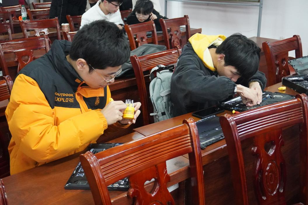 在活动现场,知行楼107化身IT“急诊室”,信息工程学院志愿者们组成一支热情洋溢、技术精湛、服务高效的专业团队,呈现出一派忙碌的景象。志愿者们秉持“疑难杂症全接诊、数据隐私严守护、知识技能双提升”的原则,服务内容包括系统重装、病毒查杀、软件安装以及硬件清灰等免费维护,赢得在场师生们纷纷点赞。