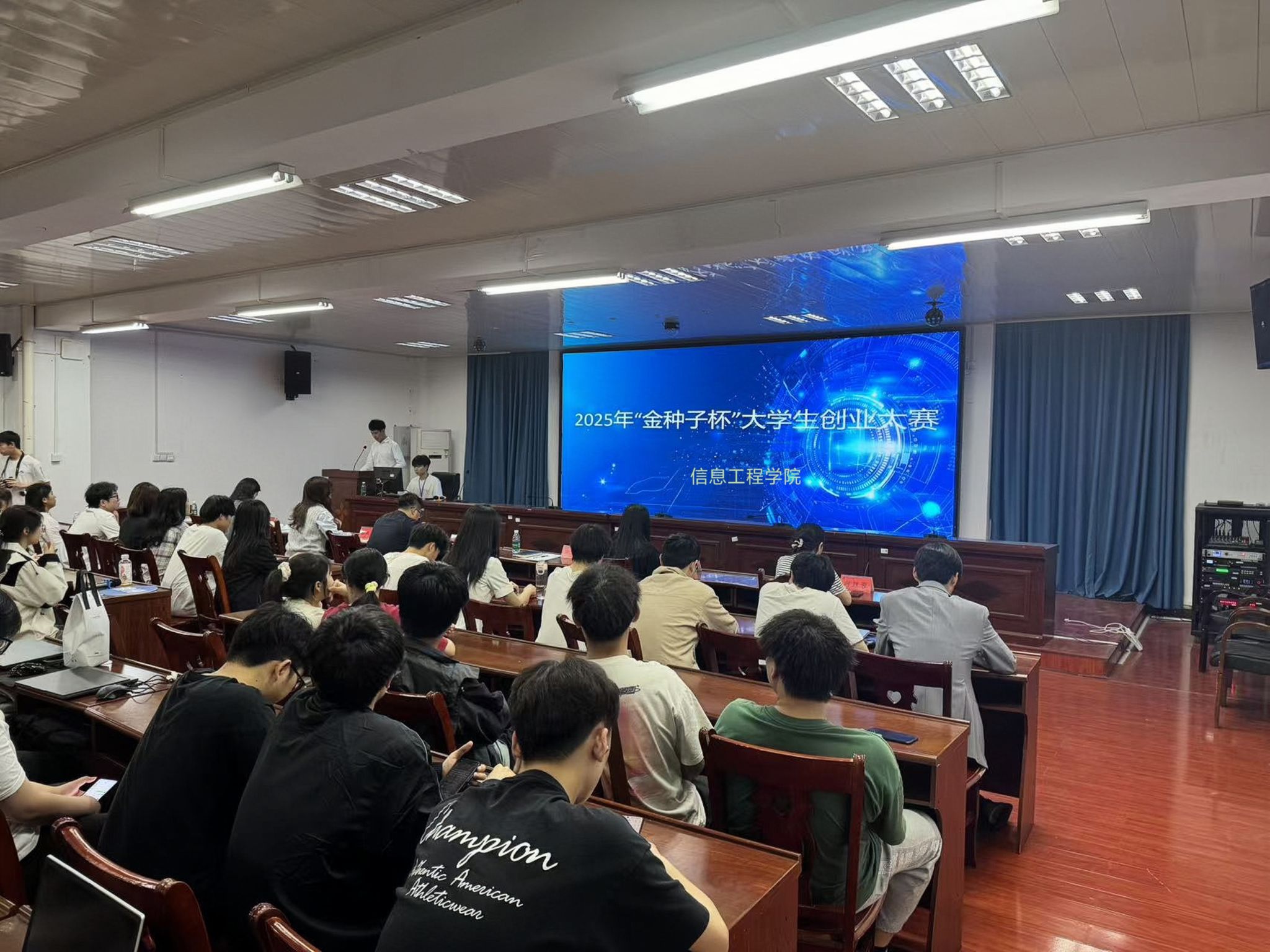 本网讯(通迅员 桂芝 唐巧娟)近日,信息工程学院举办2025年“金种子杯”大学生创业大赛,学院相关负责人,全体辅导员及65支参赛队伍等150余人参加。