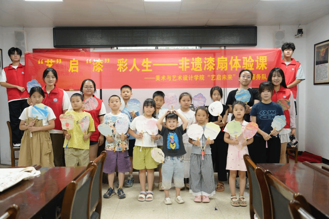 本网讯(通讯员 邓婉怡)为传承非遗文化,近日,美术与艺术设计学院“艺启未来”志愿服务队赴黄田铺镇开展“三下乡”非遗传承系列实践活动,以漆扇、扎染等非遗体验助力乡村文化建设。