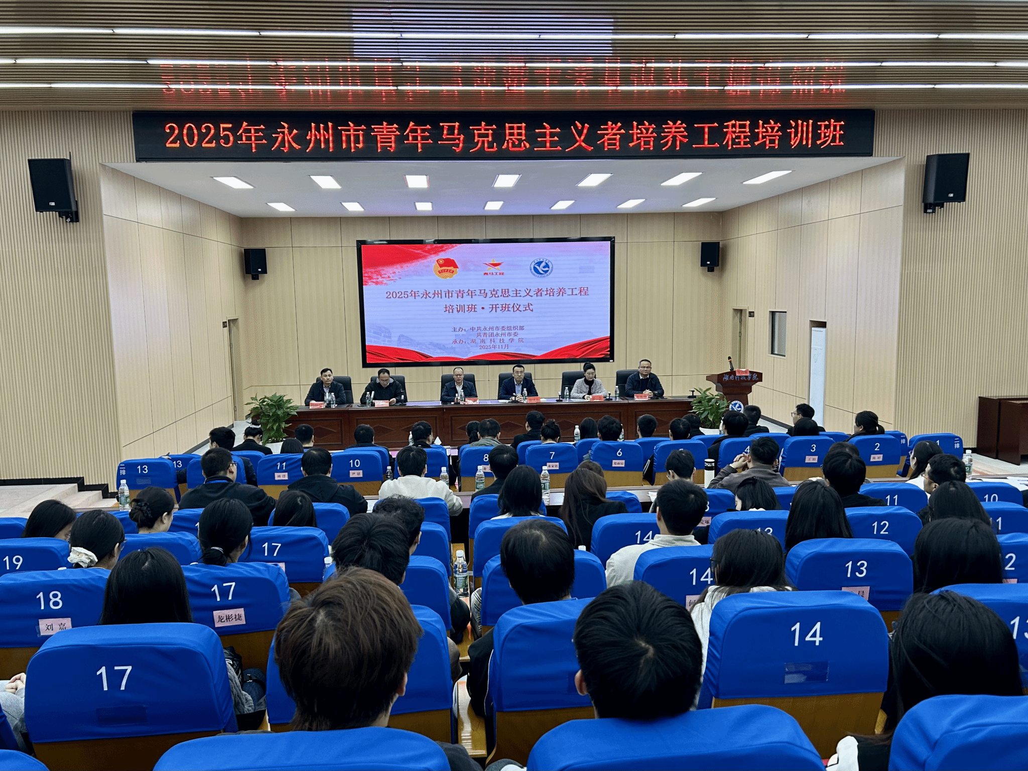 本网讯(通讯员 曹湖云 蒋滢洁)11月4日,由中共永州市委组织部、团市委联合主办的2025年永州市青年马克思主义者培养工程培训班在今年会开班。校党委委员、副校长何海,团市委副书记唐泽彦、李彬彬等出席开班仪式。来自全市各乡镇(街道)及卫健、税务、国资等系统的53名团干部齐聚一堂,开启集中学习之旅。