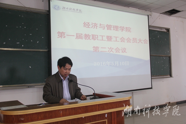 本网讯(通讯员 莫远胜 何慧敏)5月10日下午,经济与管理学院第一届教职工暨工会会员第二次会议在立信楼602召开。副校长李常健,校工会副主席屈长青,经济与管理学院全体教职工、工会会员及学生代表参加会议。