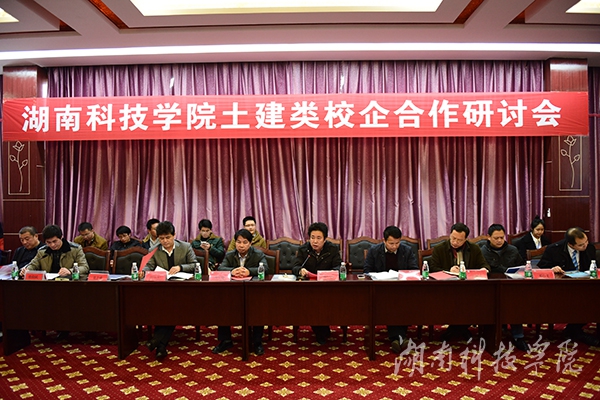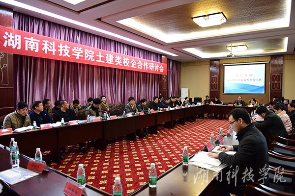 本网讯(通讯员 廖群峰)12月12日下午,校长曾宝成,副校长李常健与来自湖南建筑工程集团东北工程局、湖南省益阳公路桥梁建设有限责任公司等十七家公司代表齐聚一堂,就推进土建类校企合作展开热烈探讨。永州市住房与城乡规划建设局党组书记、局长彭晓东出席。会议由土木与环境工程学院党总支书记张俭民主持。