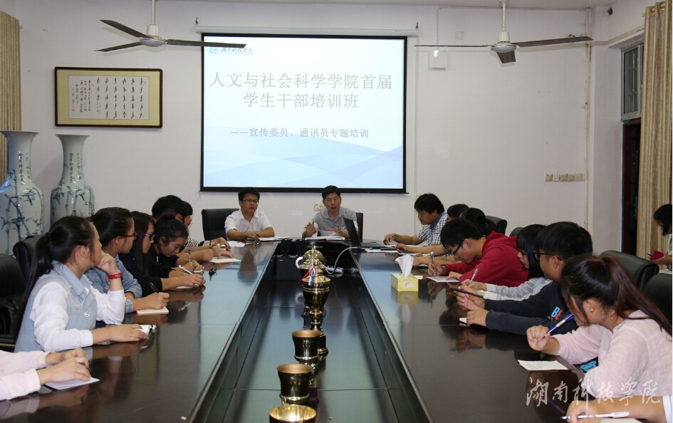 本网讯(通讯员 向赛男)10月16日下午,人文与社会科学学院在明德楼二楼会议室举办首届学生干部培训班宣传委员、通讯员专题培训。该院党总支书记杨能山、副书记邓先军、宣传委员熊焕颖、新闻中心学生干部、通讯员和各班宣布委员参加培训。培训由学工办主任夏汉伟主持。