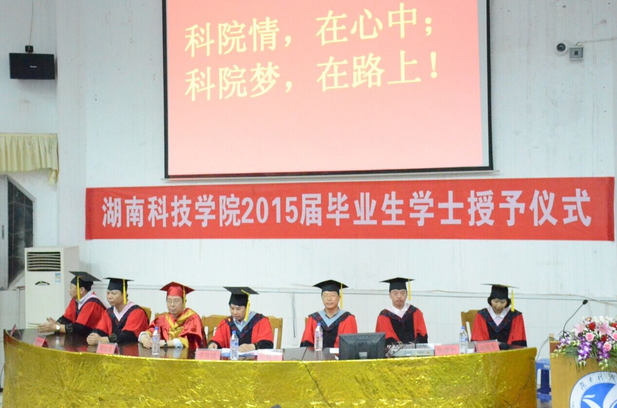 本网讯(通讯员 饶赟 摄影 佘宸昱)6月9日晚,美术与艺术设计学院在日新楼212室隆重举行了2015届毕业生学位授予仪式。校长曾宝成、副校长李常健、程智开、教务处处长石循忠、学工部部长唐华山、该院院长张建利等院领导出席仪式,毕业班班主任、辅导员、2015届毕业生参加仪式。仪式由该院党总支书记谢筱冬主持。