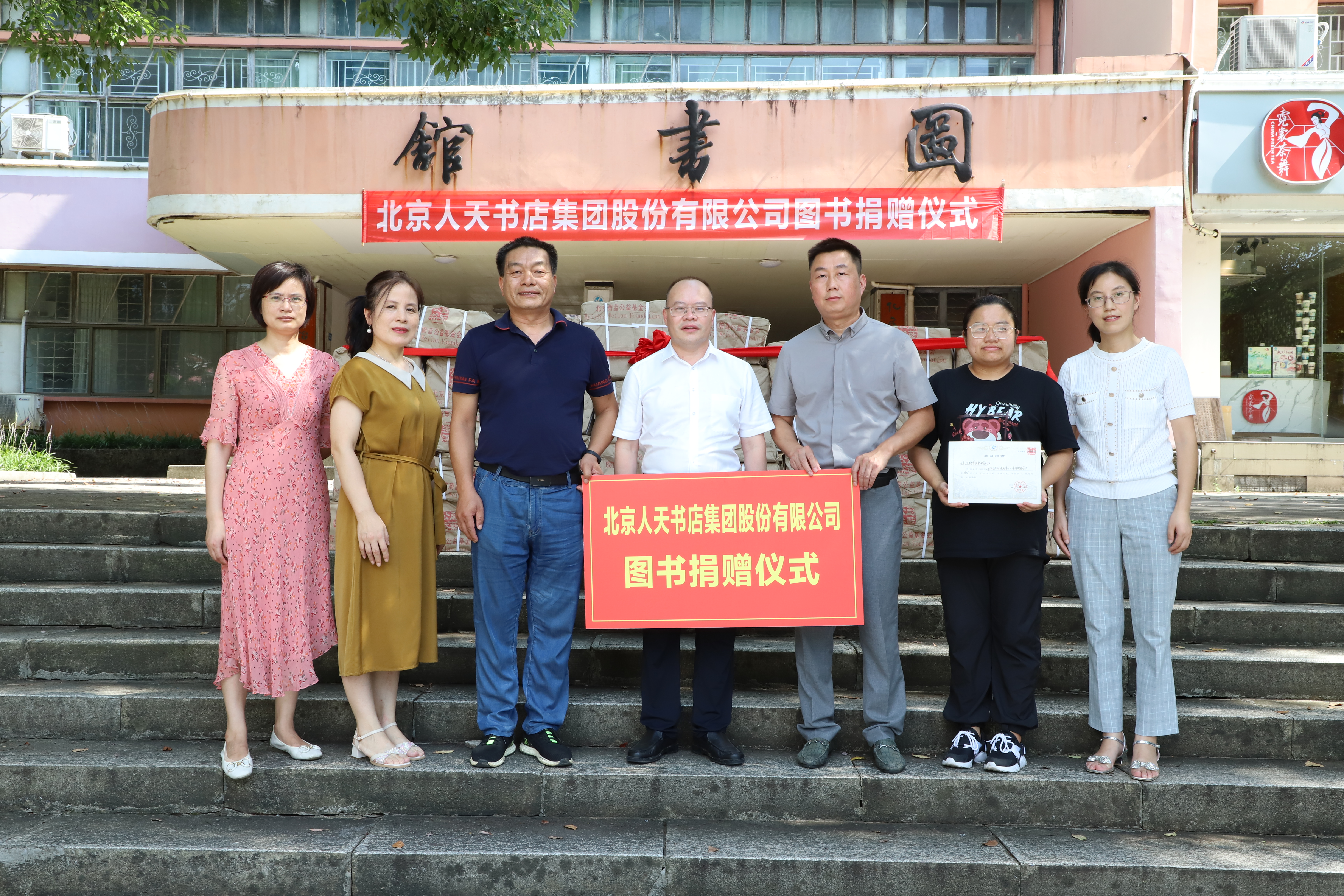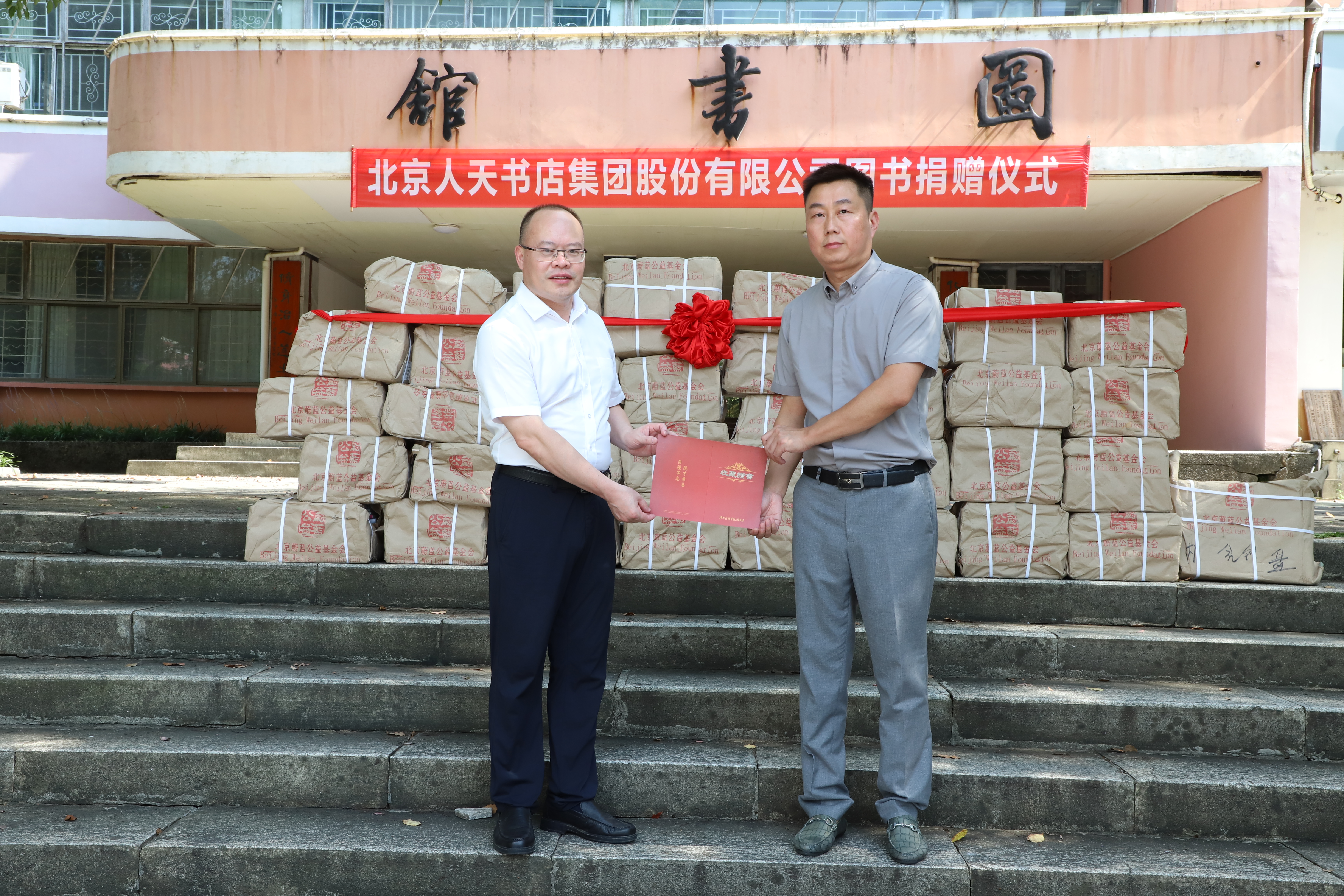 本网讯 7月3日,北京人天书店集团股份有限公司向图书馆捐赠图书仪式举行,党委委员、副校长何海代表图书馆接受了捐赠,并向该公司湖南分公司副经理吴金水颁发了捐赠证书。此次共捐赠文学、文教科体、社科、历史、工业技术等种类图书3605册,共计码洋30余万元。