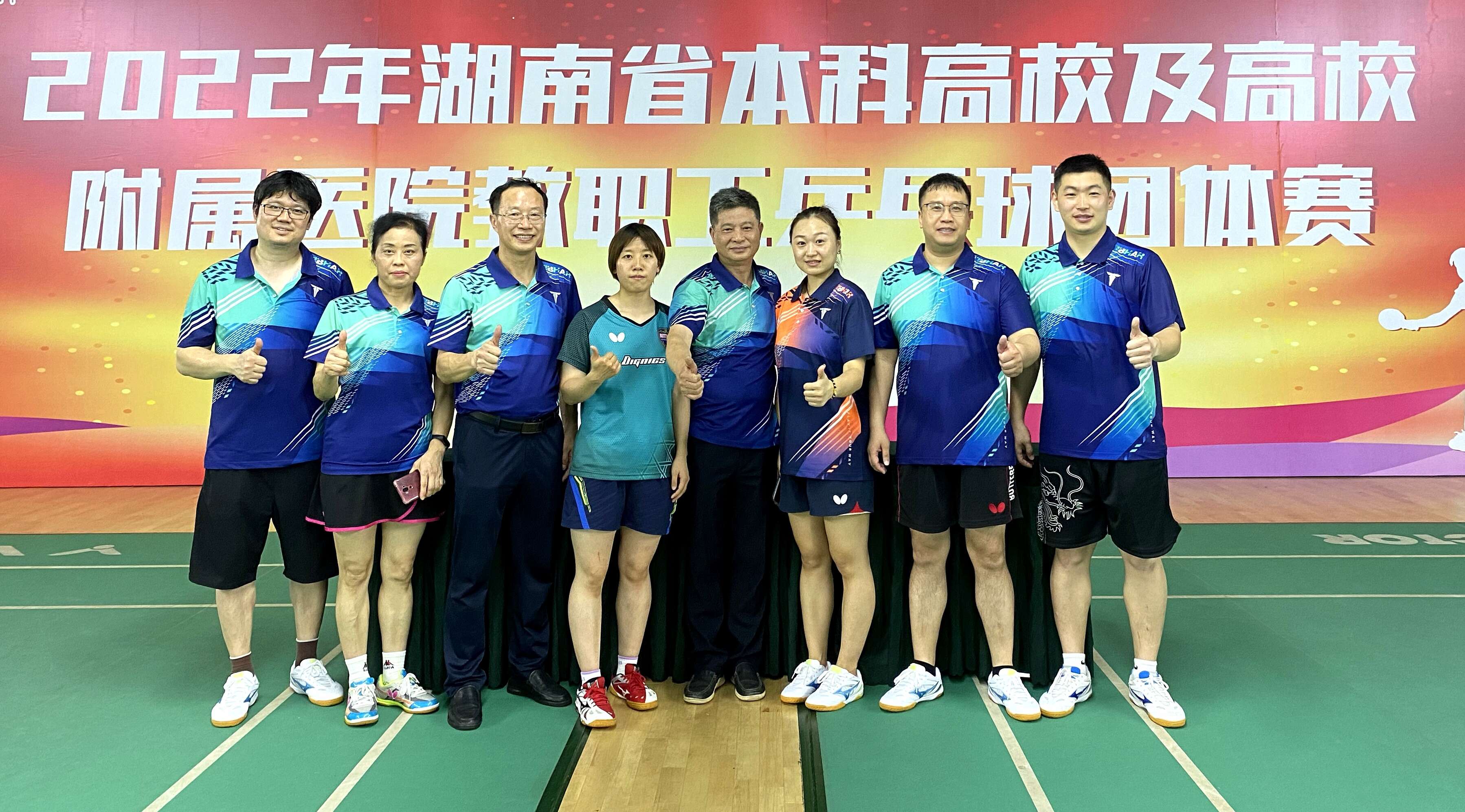 本网讯 6月18日至19日,2022年湖南省本科院校及附属医院教职工乒乓球混合团体赛在湖南省人民体育场举行,今年会代表队奋力拼搏,荣获第六名的好成绩,位居同类院校第一。