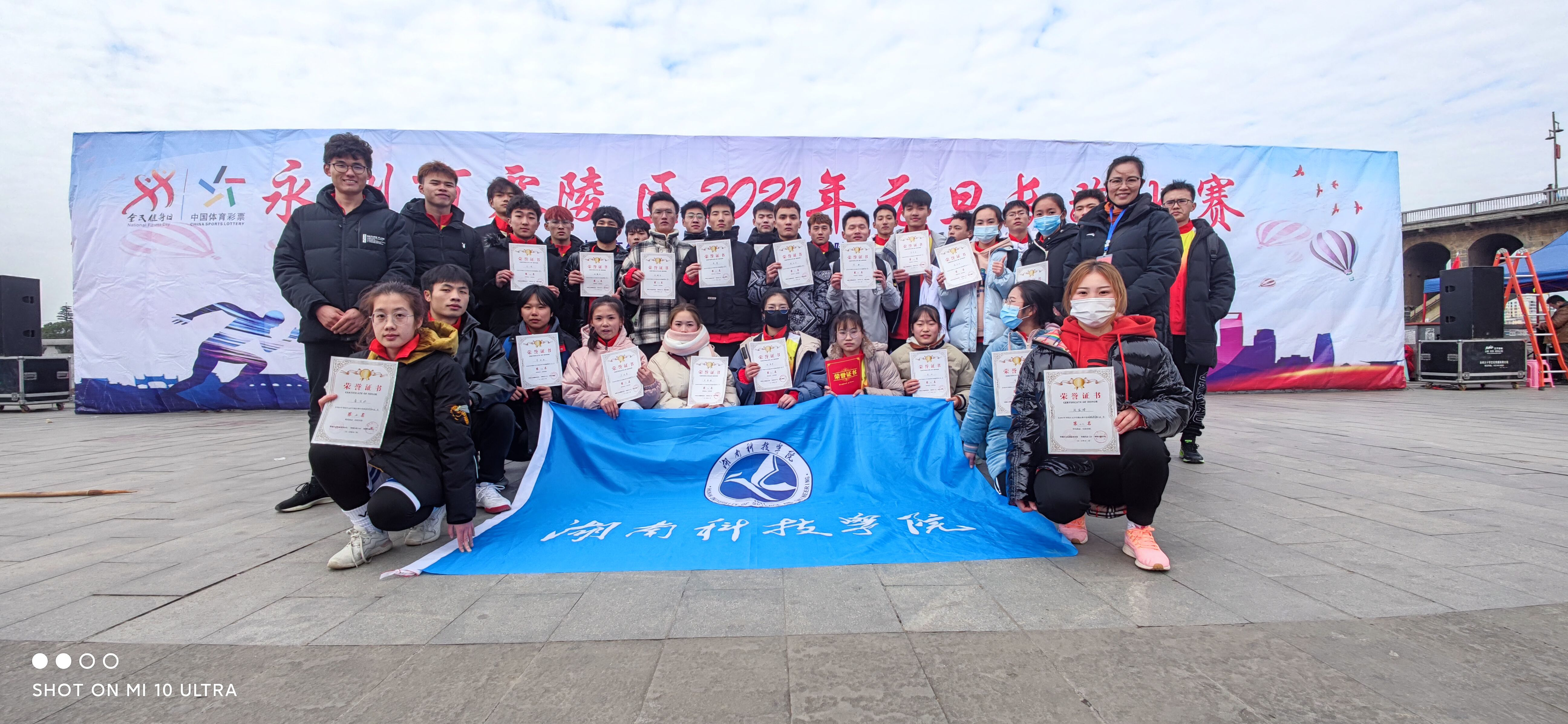 本网讯12月31日,体育学院院长刘根发、欧阳金花老师带领学生参加了零陵区2021年元旦长跑比赛,并荣获团体总分第一名。