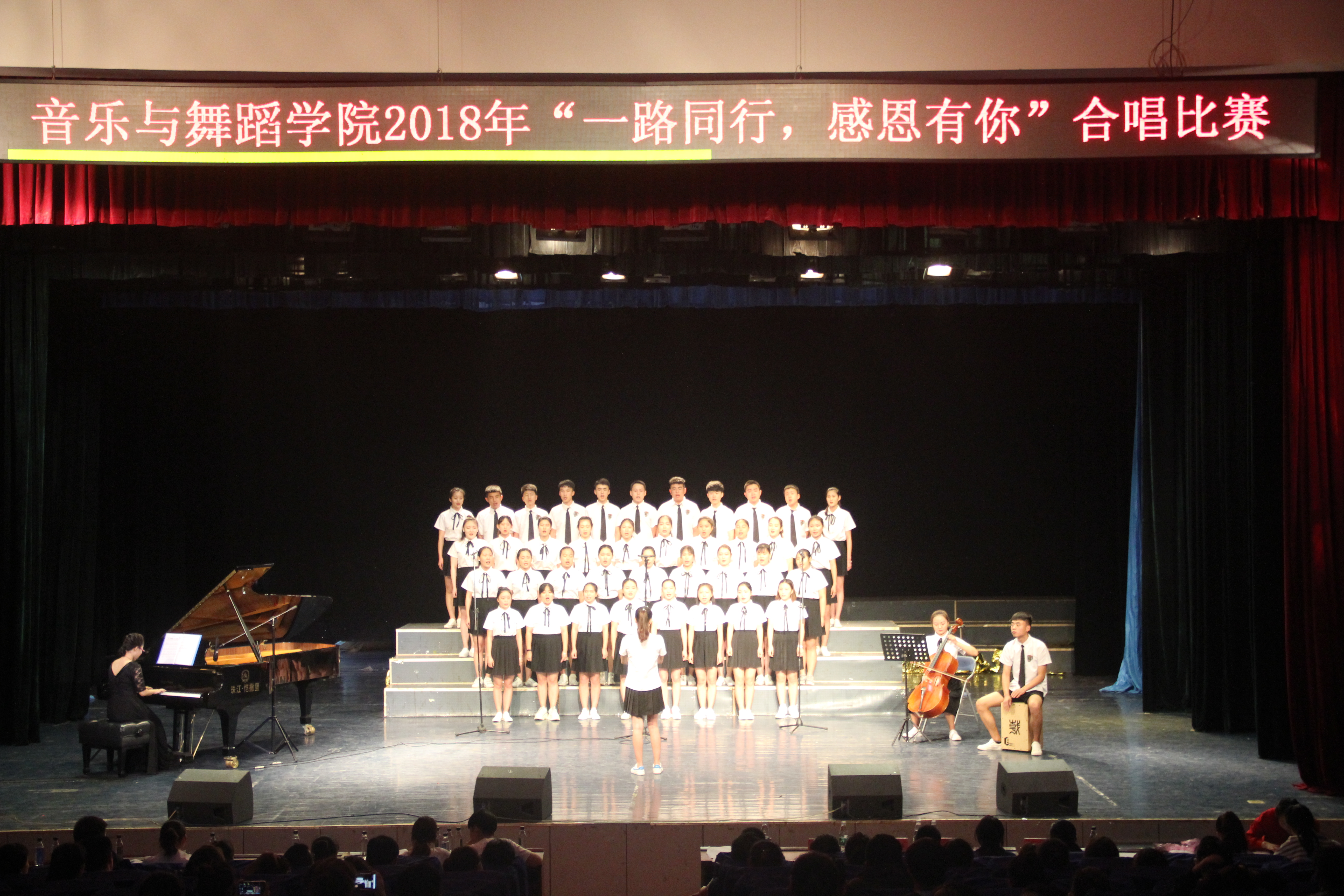 本网讯 为加强学生感恩教育,让学生常怀感恩之心,6月12日晚,音乐与舞蹈学院在大音乐厅举行“一路同行 感恩有你”合唱比赛。该院党总支部书记廖宁杰、副书记蒋磊、学工部副部长胡敏辉等观看了比赛。