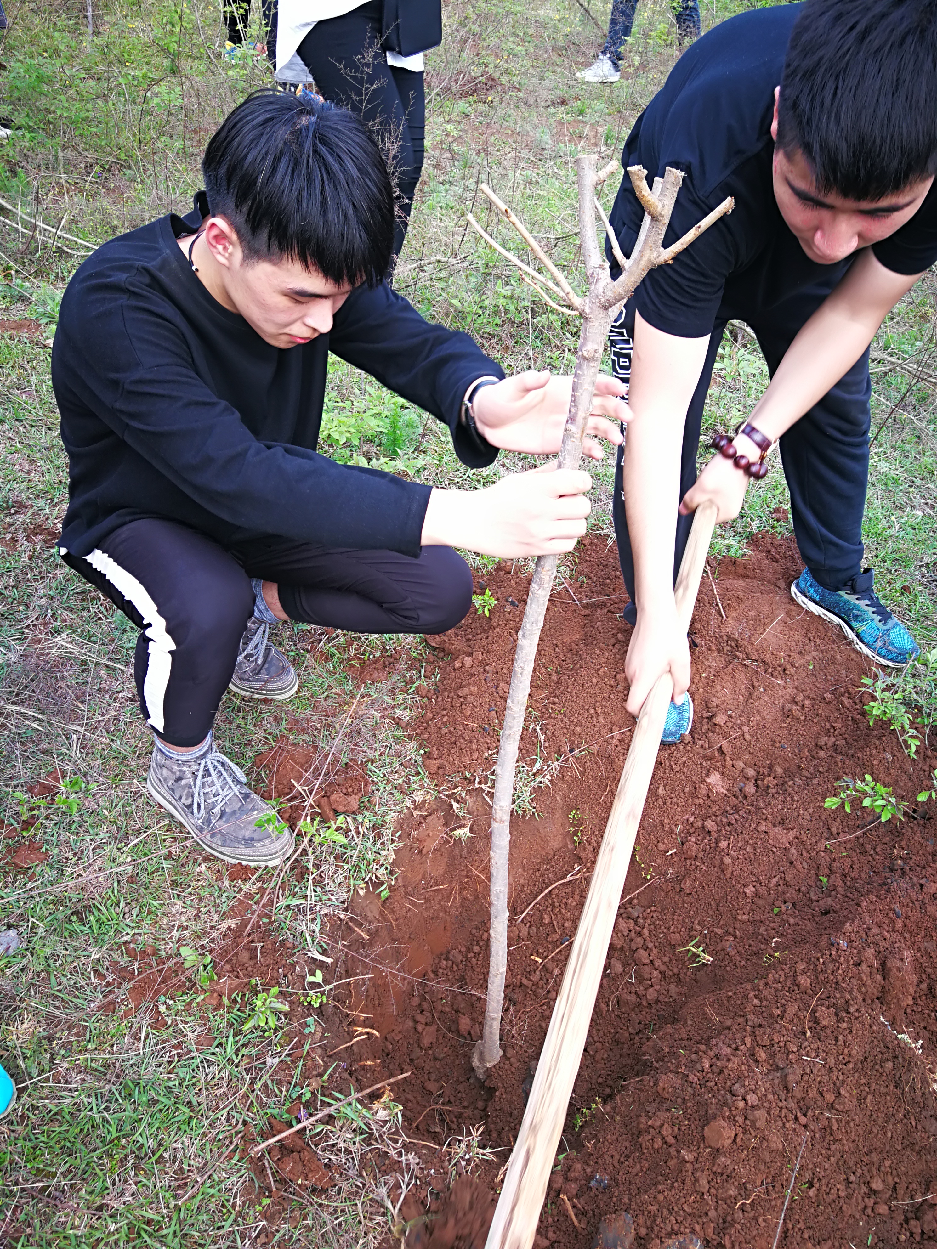 植树现场一片繁忙,30多名志愿者分8个小组,相互协作,有的搬运树苗,有的挖坑,有的培土,有浇水的,大家干劲十足,经过大家的努力,一株株新植树木迎风挺立,展现勃勃生机。大家用实际行动践行了“绿水青山就是金山银山”生态文明理念,为建设美丽零陵古城作出了积极贡献。