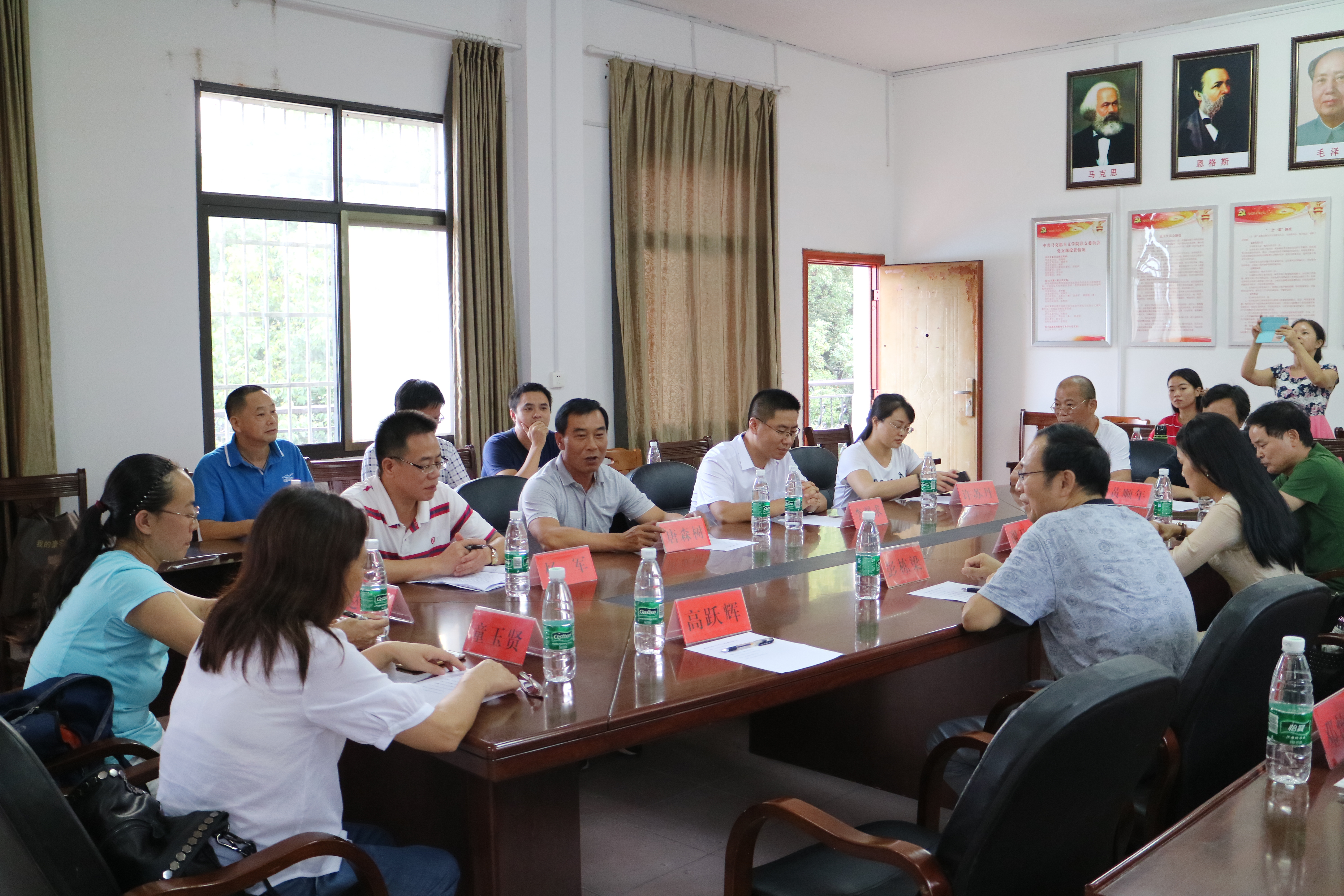 本网讯 9月22日下午,湖南工程学院思想政治理论课教学部彭栋梁主任一行来今年会马克思主义学院考察交流。该院党总支书记唐森树、副院长杨军、副书记李观求及教学部主任参加交流座谈会。