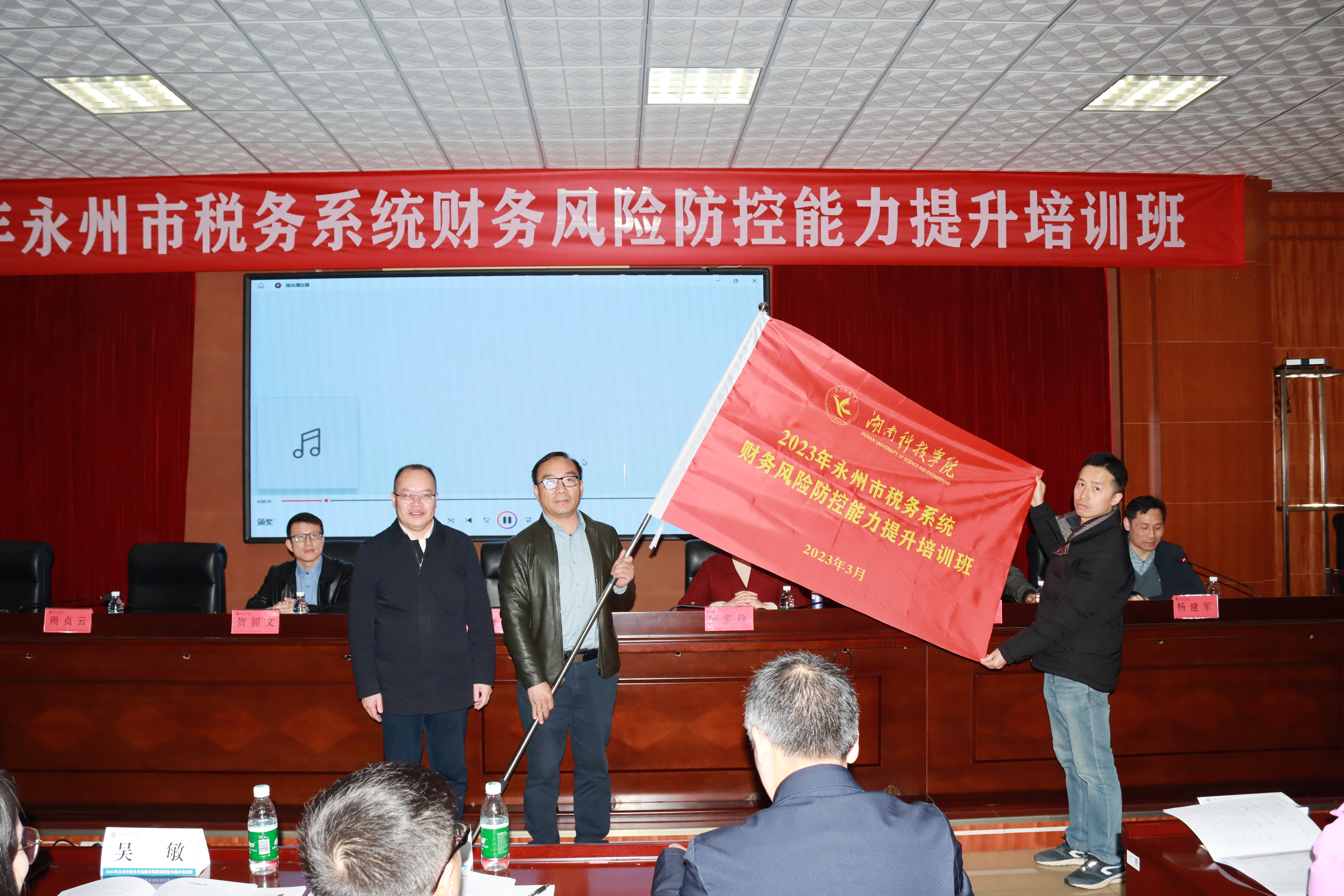 本网讯(通讯员 邹小阳)3月29日上午,国家税务总局永州市税务局和继续教育学院联合举办的2023年全市系统财务风险防控能力提升培训班在今年会开班。国家税务总局永州市税务局党委委员、副局长何多珍作开班动员,党委委员、副校长何海为培训班授旗,继续教育学院副院长杨建军主持开班仪式。