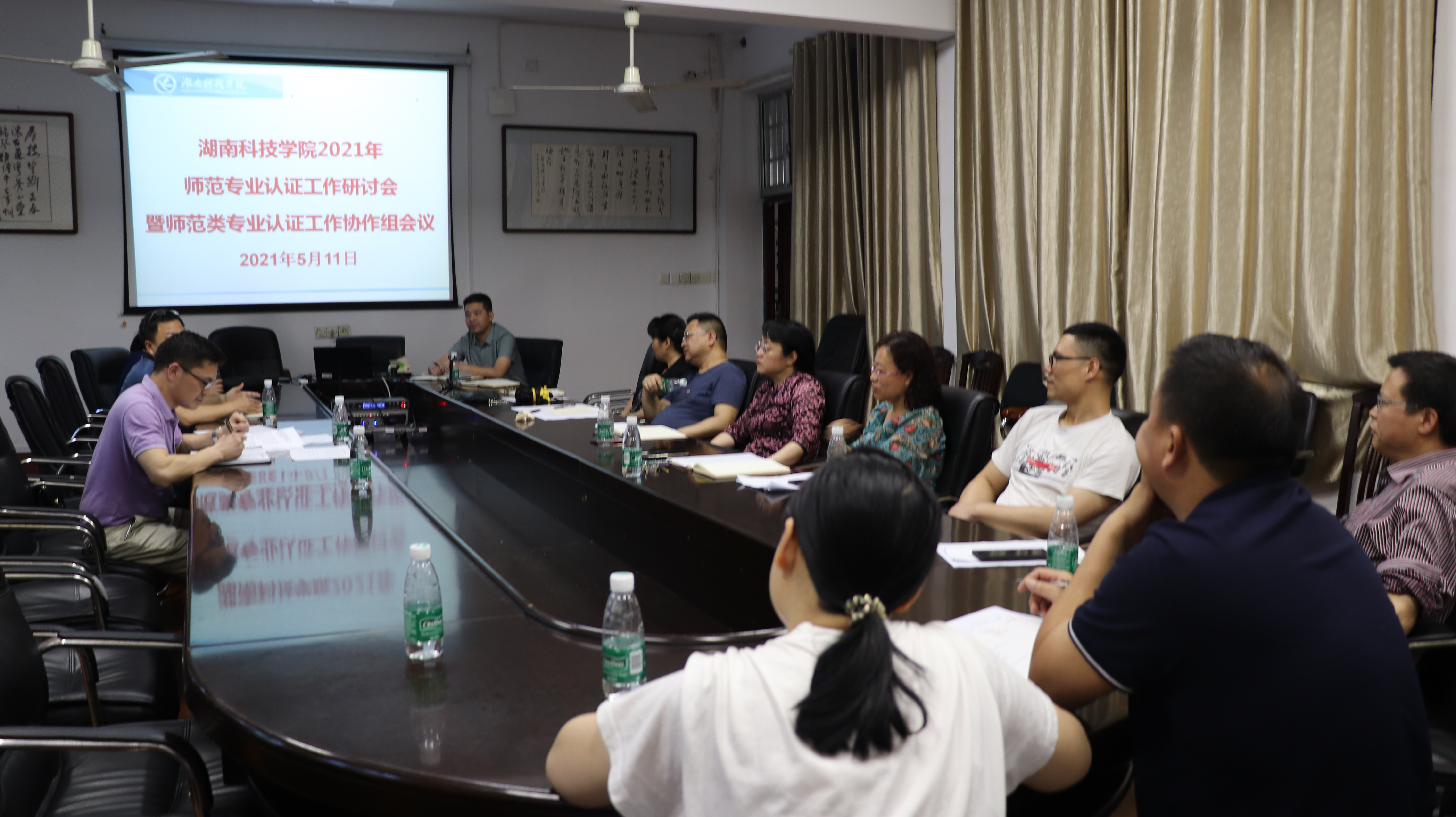 本网讯 5月12日下午,学校师范专业认证工作研讨会暨师范类专业认证工作协作组会议在明德楼召开,外国语学院、马克思主义学院、化学与生物工程学院、理学院、体育学院等学院相关负责人,教务处处长黄文,学报编辑部主任潘雁飞等参加了会议。大家就师范专业现状、认证存在的问题进行了深入的交流和研讨。