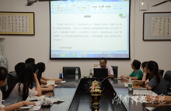 本网讯(通讯员 唐议侦 涂楚琪)6月23日下午,人文与社会科学学院邀请特级教师吴同和先生在明德楼203会议室为西山文学社全体社员举办一场以“文学创作与实践”为题的讲座。