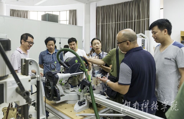 张建利向龙湘平院长一行介绍了该院的基本情况和特色办学经验,并陪同参观家具实验室、陶艺实验室及创新实验室,详细介绍了实验室建设情况。