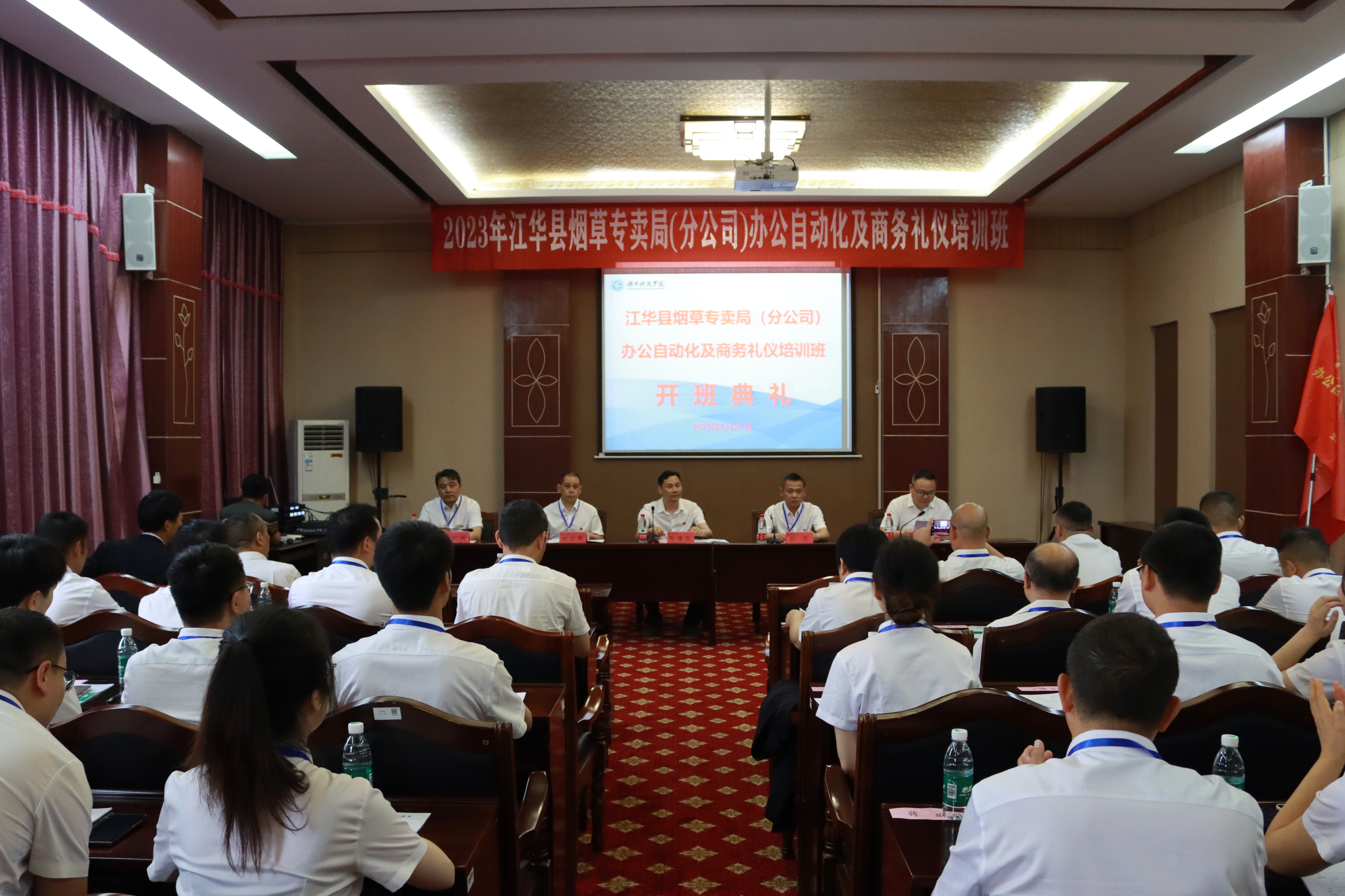本网讯(通讯员 邹小阳 )4月21日上午,2023年江华县烟草专卖局(分公司)办公自动化及商务礼仪培训班在今年会开班。江华县烟草专卖局(分公司)党组书记、局长(经理)彭军作开班动员,继续教育学院负责人杨建军为培训班授班旗。
