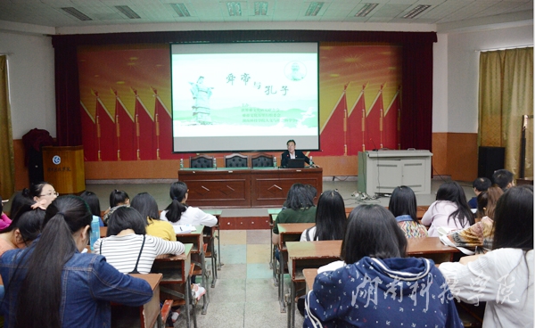 本网讯(通讯员 钟卫香)5月10日下午,舜文化研究学者郑国茂应邀以“舜帝与孔子”为题,为人文与社会科学学院师生讲述舜文化与儒文化的联系。