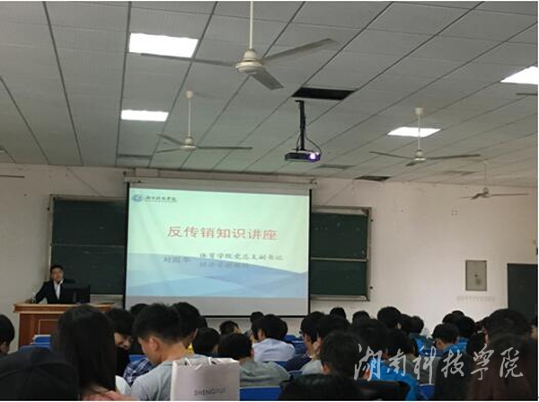 本网讯 4月13日,体育学院在立信楼602开展反传销知识讲座,讲座由该院党总支副书记刘国华主讲。