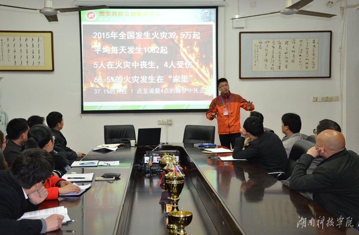 本网讯(通讯员  涂楚琪 钟卫香)3月22日下午,人文与社会科学学院于明德楼203会议室举行教师消防安全知识培训,湖南省消防协会科普宣传教育委员会宣讲成员谭塘峰主讲。
